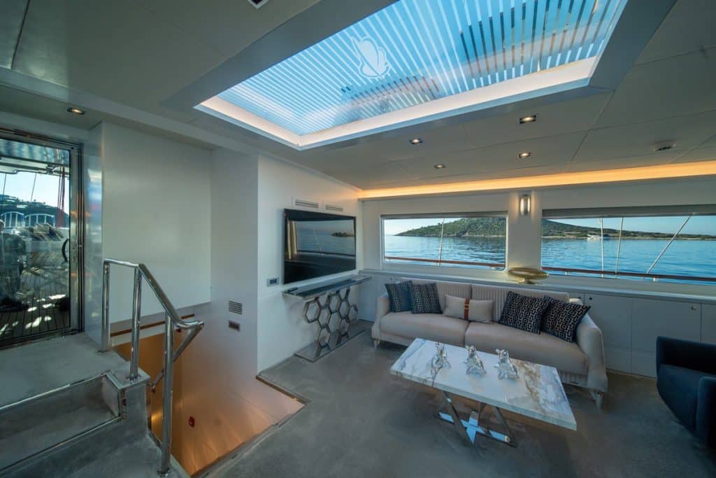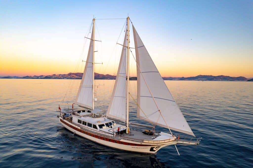 Unsere 38 m lange Gulet Double Eagle wurde 2005 gebaut. Ihre endgültige Form erhielt sie mit der Renovierung und Sanierung, die sie 2015 durchlief. Unser Boot verfügt über 5 Kabinen, darunter 2 Master-, 1 Doppel- und 2 Zweibettkabinen, jede stilvoller und komfortabler, mit eigener Dusche, WC und Klimaanlage. 6 Es gibt separate Wohnbereiche, eine voll ausgestattete Küche, Essbereiche im Innen- und Außenbereich sowie Ruhebereiche für die Besatzung. Es gibt ausreichend Sonnenkissen, Stühle und Serviersets für alle Gäste. Die Gulet Double Eagle verfügt dank ihrer vollwertigen Radio-, GSM-Telefon- und Navigationsausrüstung über ein vollwertiges Radio. Bodrum, Göcek, Marmaris, Fethiye usw. Sie können sicher zu unseren Zielen der Blauen Kreuzfahrt segeln. LCD-Fernseher, DVD-Player und Stereoanlage stehen unseren geschätzten Gästen der Blauen Reise in der Lounge unserer Gulet zur Verfügung. Wassersportarten wie Kanufahren, Tauchen und Windsurfen stehen unseren Gästen auf Wunsch optional zur Verfügung. Unser Boot Double Eagle bietet unseren Passagieren, die die Blaue Reise in den unberührten Buchten der Türkei genießen möchten, auch Unterhaltung und die Möglichkeit, auf dem Boot zu entspannen. Gulet Double Eagle ist bereit, unsere geschätzten Gäste willkommen zu heißen, die erwägen, ein Gulet für eine Woche in den Regionen Bodrum, Göcek, Fethiye, Marmaris oder Gökova zu mieten. |