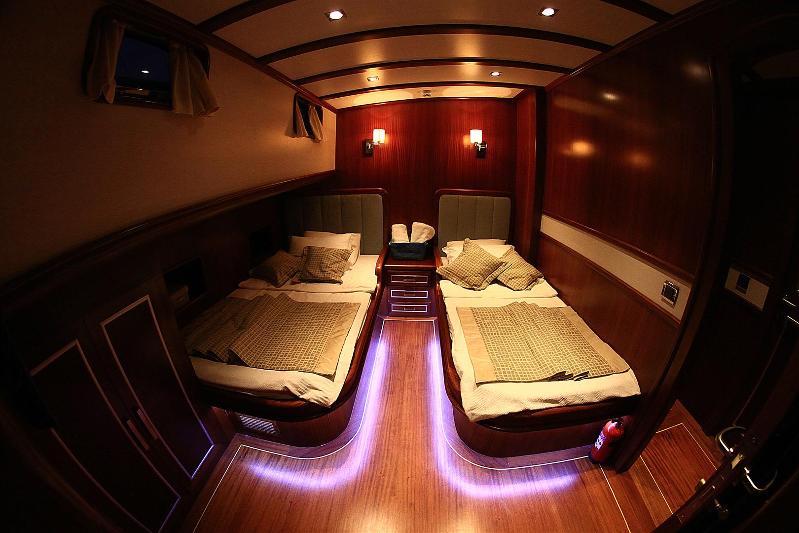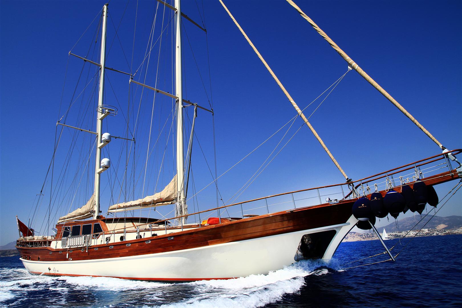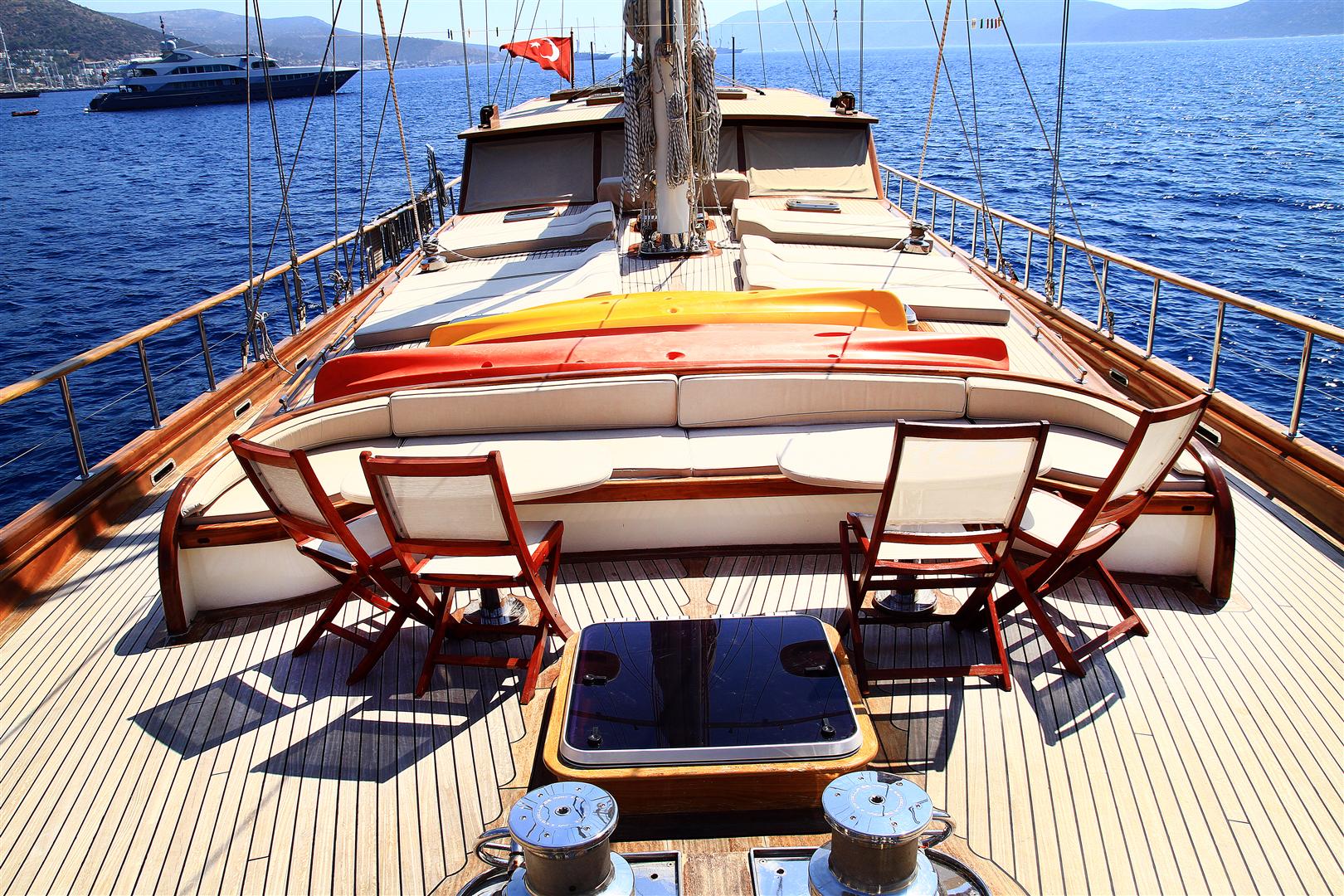 Unsere 34 m lange Gulet Estrella De Mar wurde 2011 gebaut. Unser Boot verfügt über 5 Kabinen, darunter 1 Master-, 2 Doppel- und 2 Zweibettkabinen, jede stilvoller und komfortabler, mit eigener Dusche, WC und Klimaanlage. 4 Es gibt separate Wohnbereiche, eine voll ausgestattete Küche, Essbereiche im Innen- und Außenbereich sowie Ruhebereiche für die Besatzung. Es gibt ausreichend Sonnenkissen, Stühle und Serviersets für alle Gäste. Die Gulet Estrella De Mar verfügt dank ihrer vollwertigen Radio-, GSM-Telefon- und Navigationsausrüstung über eine vollwertige Ausstattung. Bodrum, Göcek, Marmaris, Fethiye usw. Sie können sicher zu unseren Zielen der Blauen Kreuzfahrt segeln.