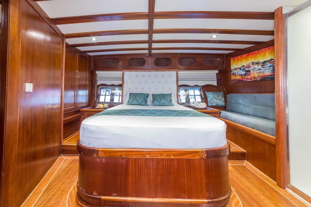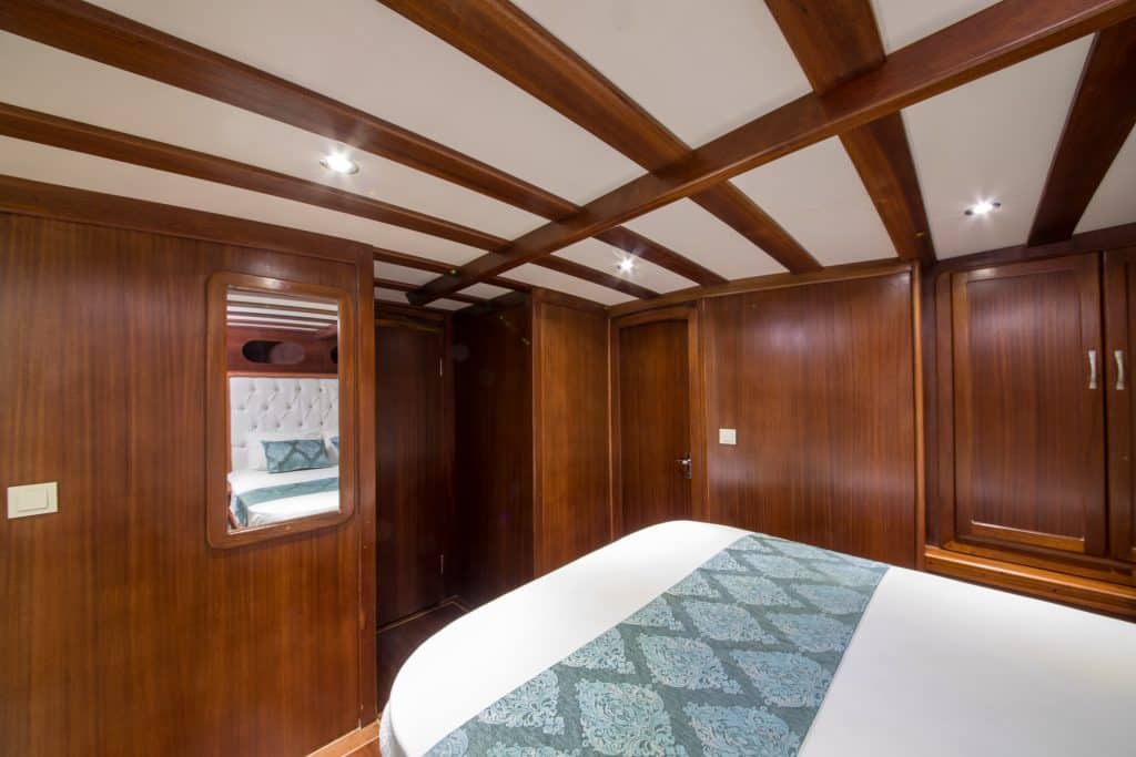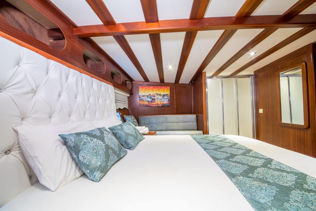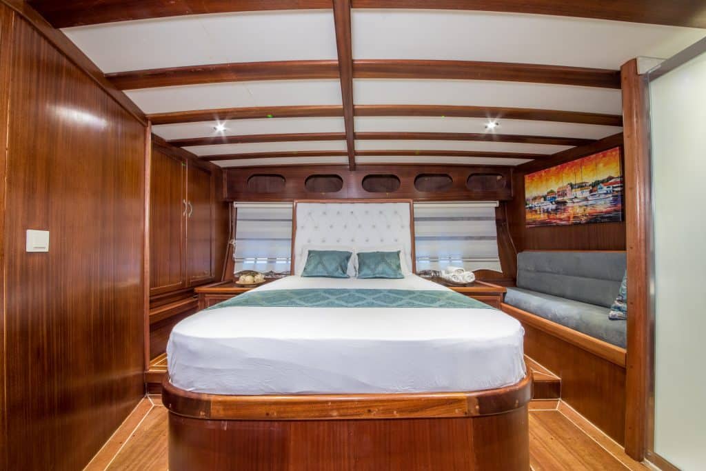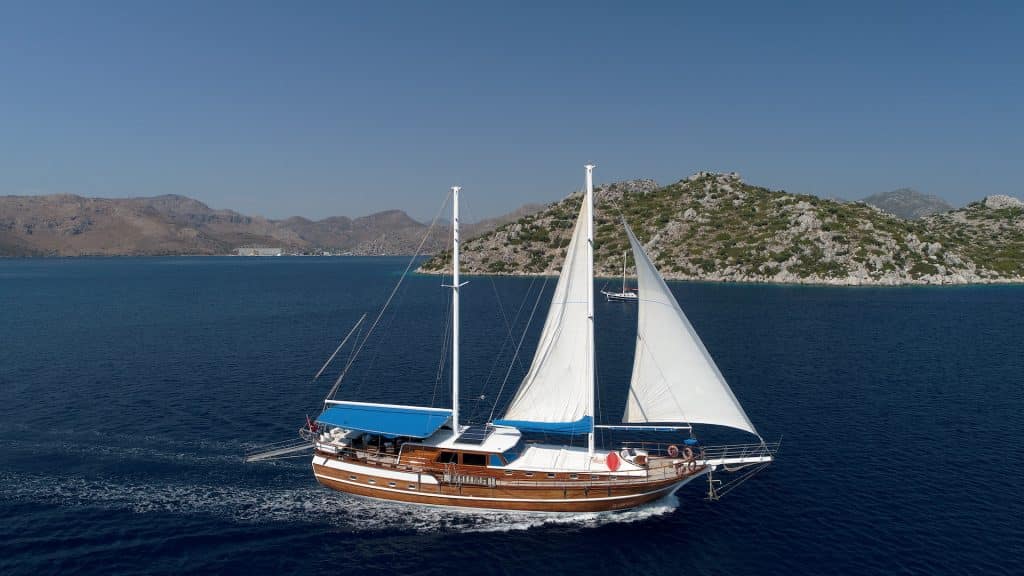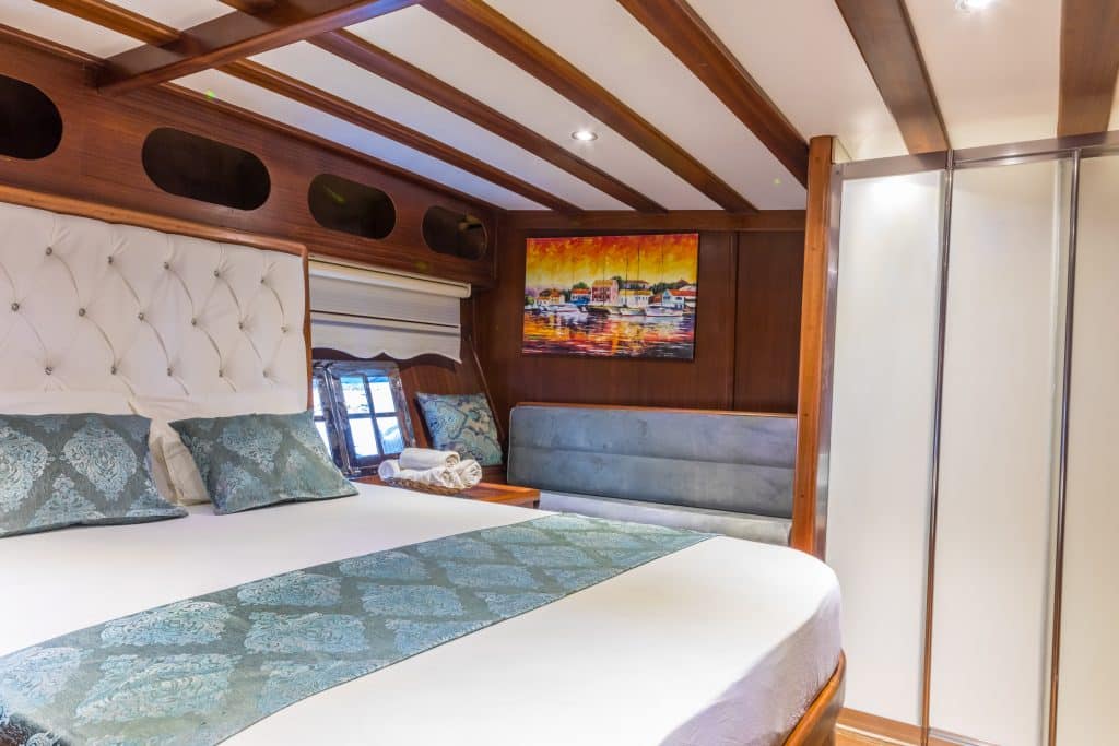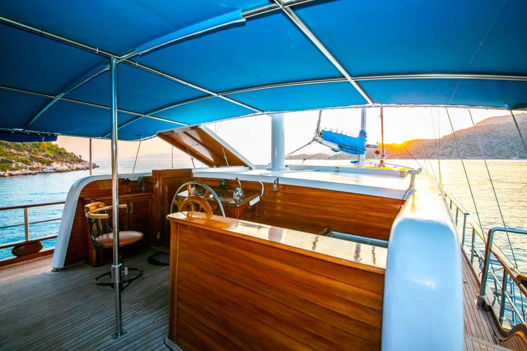 Unsere 24 m lange Gulet Gokce 1 wurde 1996 gebaut. Ihre endgültige Form erhielt sie mit der Renovierung und Sanierung im Jahr 2011. Unser Boot verfügt über 5 Kabinen, 1 Master- und 4 Doppelkabinen, jede stilvoller und komfortabler, mit eigener Dusche, WC und Klimaanlage. 3 Es gibt separate Wohnbereiche, eine voll ausgestattete Küche, Essbereiche im Innen- und Außenbereich sowie Ruhebereiche für die Besatzung. Es gibt ausreichend Sonnenkissen, Stühle und Serviersets für alle Gäste. Dank seiner vollwertigen Wireless-, GSM-Telefon- und Navigationsausrüstung bietet Gulet Gokce 1; Bodrum, Göcek, Marmaris, Fethiye usw. Sie können sicher zu unseren Zielen der Blauen Kreuzfahrt segeln.