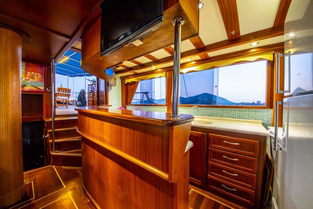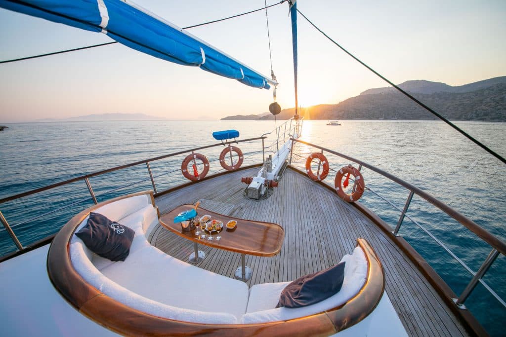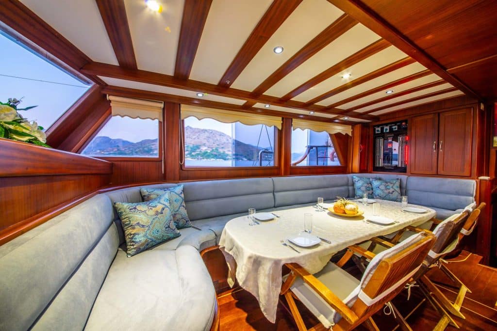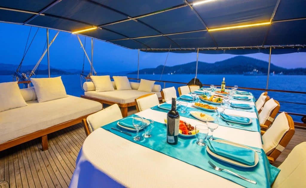 LCD-Fernseher, DVD-Player und Stereoanlage stehen unseren geschätzten Gästen der Blauen Reise in der Lounge unserer Gulet zur Verfügung. Wassersportarten wie Kanufahren, Tauchen und Windsurfen stehen unseren Gästen auf Wunsch optional zur Verfügung. Unser Boot bietet unseren Passagieren, die die Blaue Reise in den unberührten Buchten der Türkei genießen möchten, auch Unterhaltung und die Möglichkeit, sich auf dem Boot zu entspannen. Gulet Gokce 1 ist bereit, unsere geschätzten Gäste willkommen zu heißen, die erwägen, ein Gulet für eine Woche in den Regionen Bodrum, Göcek, Fethiye, Marmaris oder Gökova zu mieten.