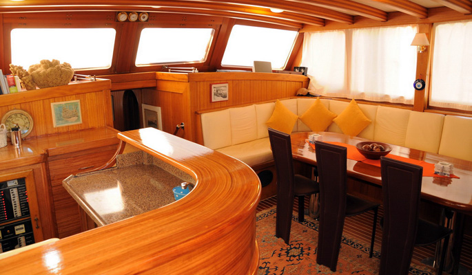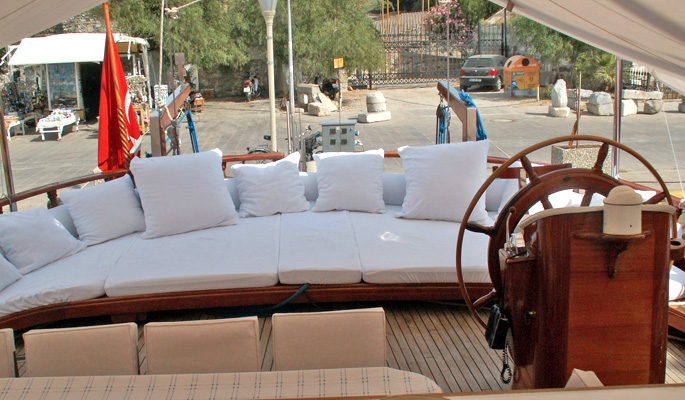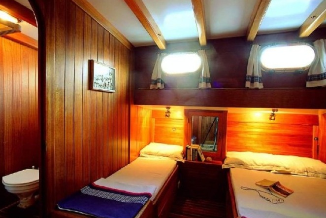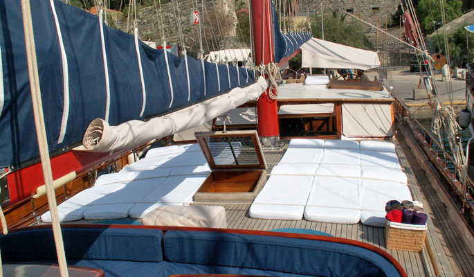 Unser 28 m langes Gulet Levent Kaptan wurde 1998 gebaut. Seine endgültige Form erhielt es mit der Renovierung und Sanierung, die es 2009 durchlief. Unser Boot verfügt über 5 Kabinen, darunter 1 Master-, 1 Doppel- und 3 Zweibettkabinen, jede stilvoller und komfortabler als die andere, mit eigener Dusche, WC und Klimaanlage. 4 Es gibt separate Wohnbereiche, eine voll ausgestattete Küche, Essbereiche im Innen- und Außenbereich sowie Ruhebereiche für die Besatzung. Es gibt ausreichend Sonnenkissen, Stühle und Serviersets für alle Gäste. Gulet Levent Kaptan verfügt dank seiner vollwertigen drahtlosen GSM-Telefonnavigationsausrüstung; Bodrum, Göcek, Marmaris, Fethiye usw. Sie können sicher zu unseren Zielen der Blauen Kreuzfahrt segeln.