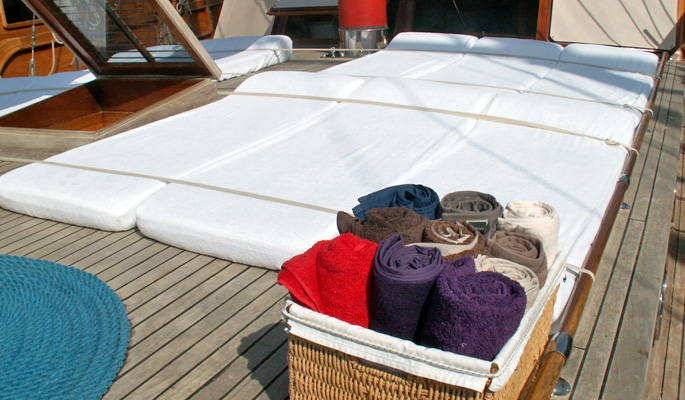 LCD-Fernseher, DVD-Player und Stereoanlage stehen unseren geschätzten Gästen der Blauen Reise in der Lounge unserer Gulet zur Verfügung. Wassersportarten wie Kanufahren, Tauchen und Windsurfen stehen unseren Gästen auf Wunsch optional zur Verfügung. Unser Boot bietet unseren Passagieren, die die Blaue Reise in den unberührten Buchten der Türkei genießen möchten, auch Unterhaltung und die Möglichkeit, sich auf dem Boot zu entspannen. Gulet Levent Kaptan ist bereit, unsere geschätzten Gäste willkommen zu heißen, die erwägen, ein Gulet für eine Woche in den Regionen Bodrum, Göcek, Fethiye, Marmaris oder Gökova zu mieten.