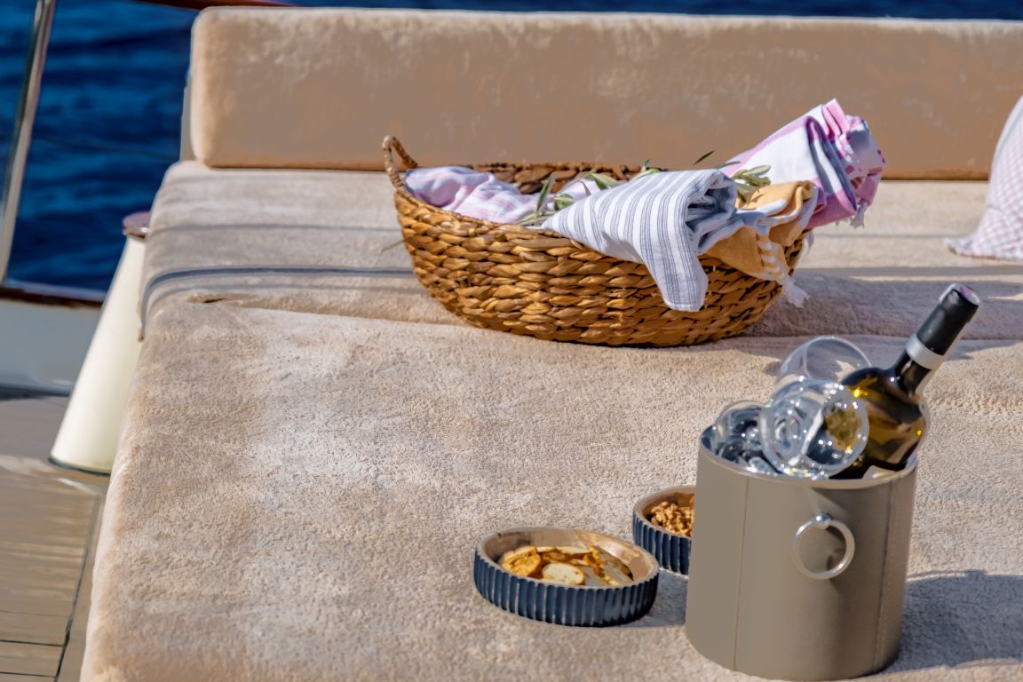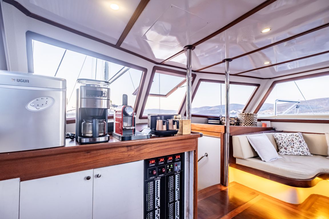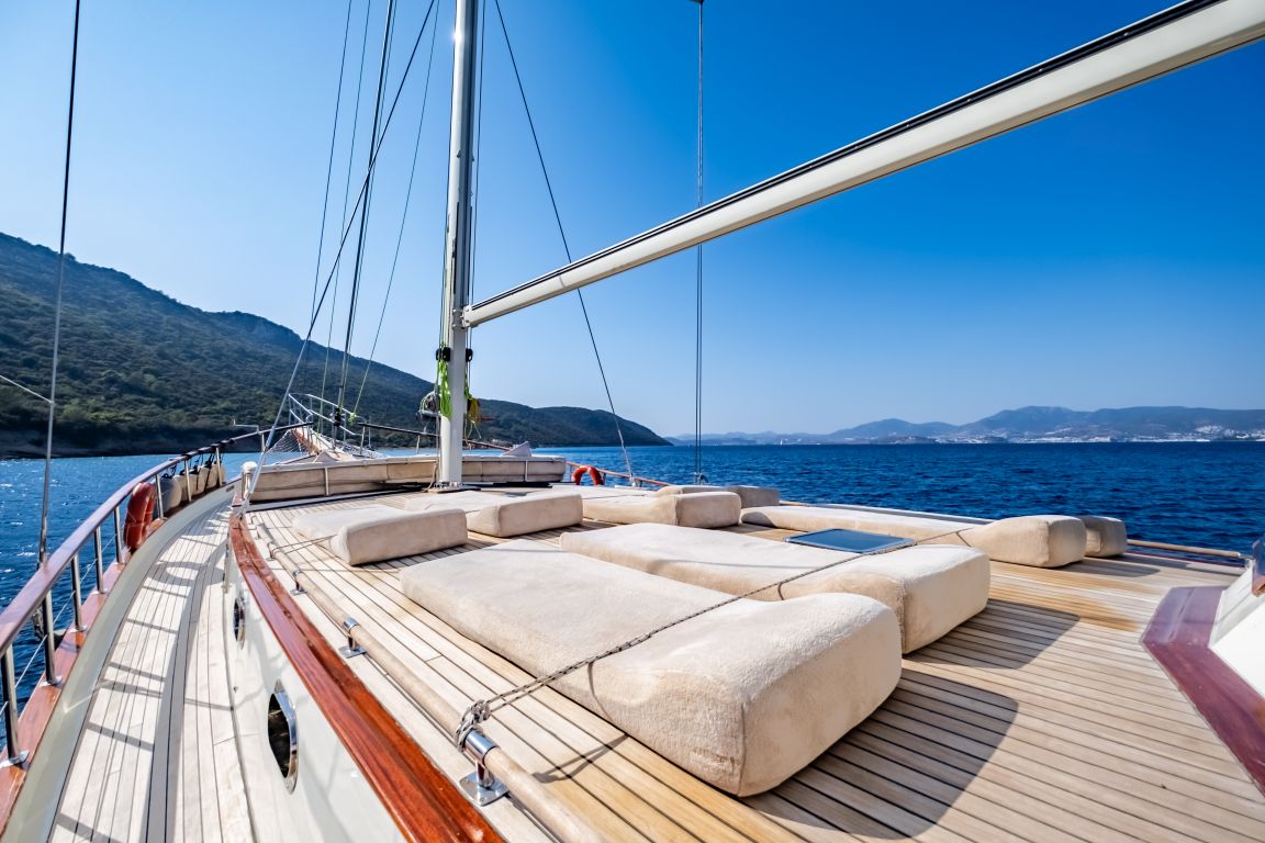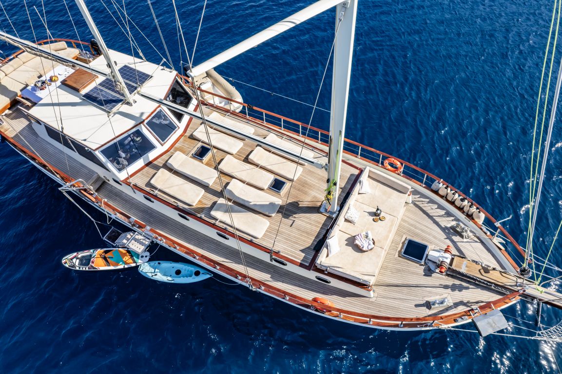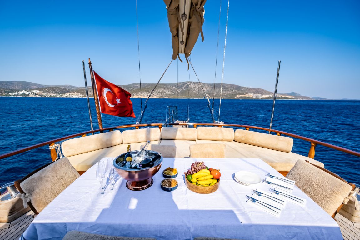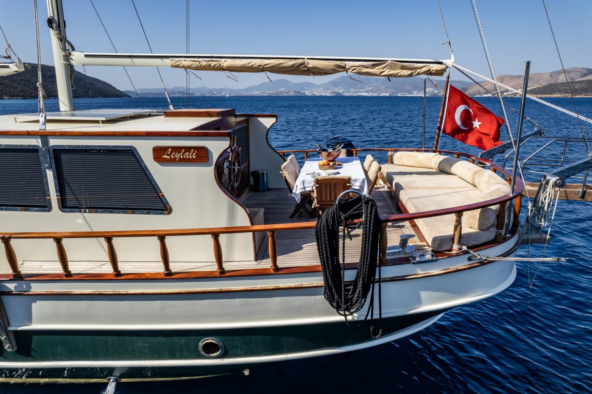 Unser 23 m langes Gulet Leylali wurde 2009 gebaut. Seine endgültige Form erhielt es mit der Renovierung und Sanierung, die es 2017 durchlief. Unser Boot verfügt über 5 Kabinen, 1 Master und 4 Doppelkabinen, jede stilvoller und komfortabler, mit eigener Dusche, WC und Klimaanlage. 3 Es gibt separate Wohnbereiche, eine voll ausgestattete Küche, Essbereiche im Innen und Außenbereich sowie Ruhebereiche für die Besatzung. Es gibt ausreichend Sonnenkissen, Stühle und Serviersets für alle Gäste. Gulet Leylali verfügt dank seiner vollwertigen Radio-, GSM-Telefon- und Navigationsausrüstung; Bodrum, Göcek, Marmaris, Fethiye usw. Sie können sicher zu unseren Zielen der Blauen Kreuzfahrt segeln. LCD-Fernseher, DVD-Player und Stereoanlage stehen unseren geschätzten Gästen der Blauen Reise in der Lounge unserer Gulet zur Verfügung. Wassersportarten wie Kanufahren, Tauchen und Windsurfen stehen unseren Gästen auf Wunsch optional zur Verfügung. Unser Boot bietet unseren Passagieren, die die Blaue Reise in den unberührten Buchten der Türkei genießen möchten, auch Unterhaltung und die Möglichkeit, sich auf dem Boot zu entspannen. Gulet Leylali heißt unsere geschätzten Gäste willkommen, die eine wöchentliche Gulet in den Regionen Bodrum, Göcek, Fethiye, Marmaris oder Gökova mieten möchten. |