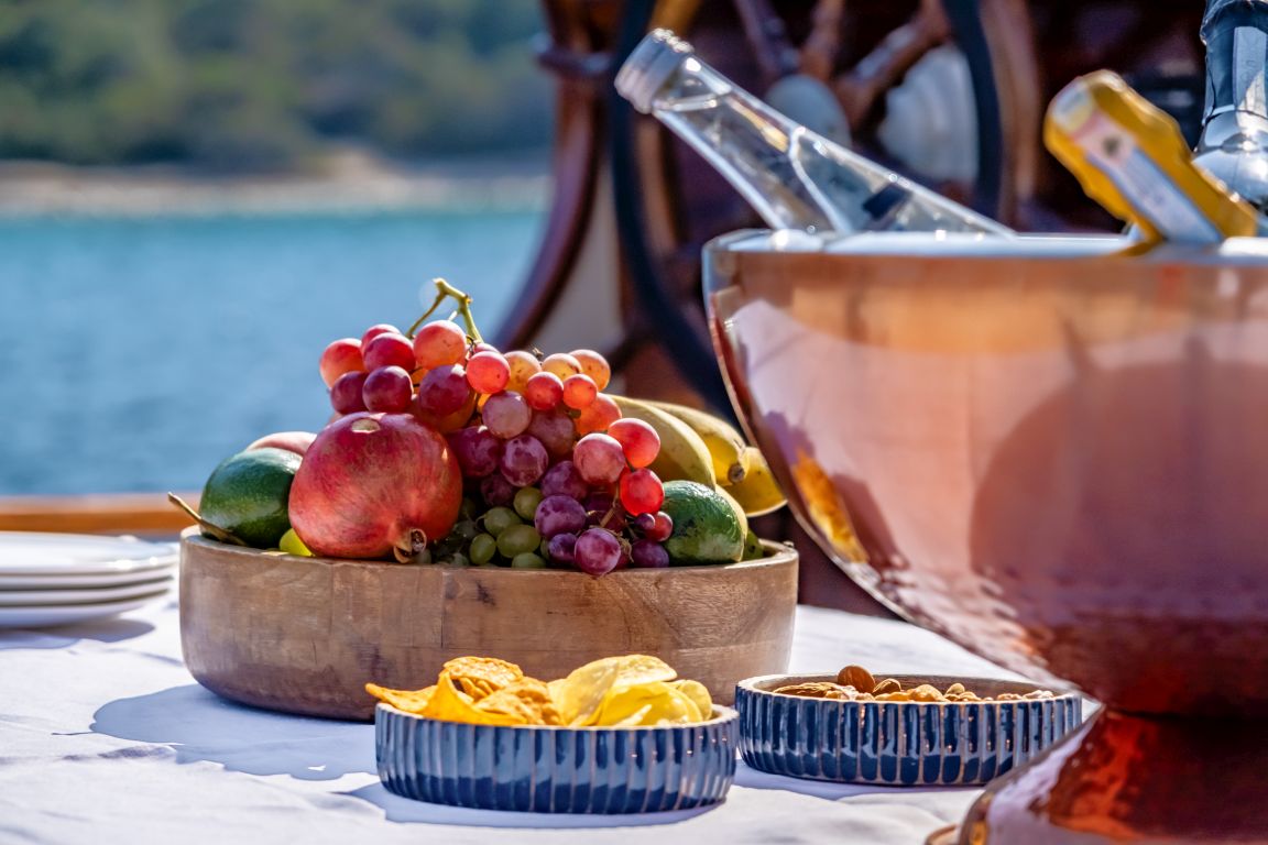 9,9 PS Außenbordmotor, 2 Paddleboards, Ringo, Schnorchel und Angelausrüstung, Sonnenmatratzen, Esstisch auf dem Achterdeck, Deckdusche, Sonnenbadebereiche auf dem Vorderdeck, Fernseher, DVD, UKW-Radio, Musikanlage, WLAN, Eismaschine, Ofen, Kühlschrank, Gefrierschrank, Kühler für Erfrischungsgetränke, Kaffeemaschine, Klimaanlage, Sicherheitsausrüstung, GPS, Kompass, Kartenplotter, Sicherheitsausrüstung, Segeln Ausrüstung, Navigationsausrüstung |