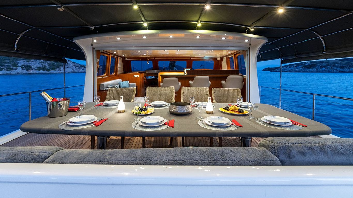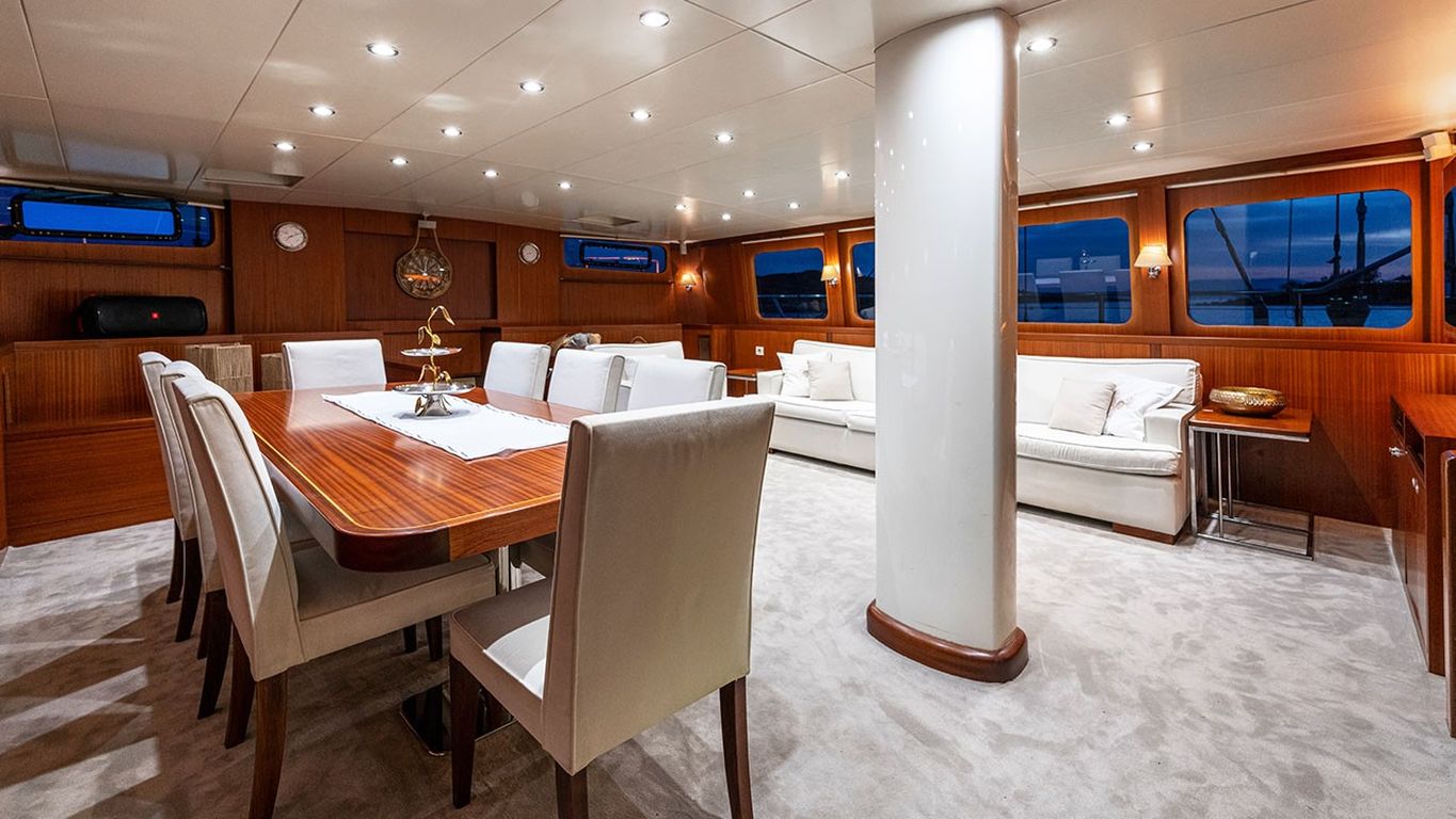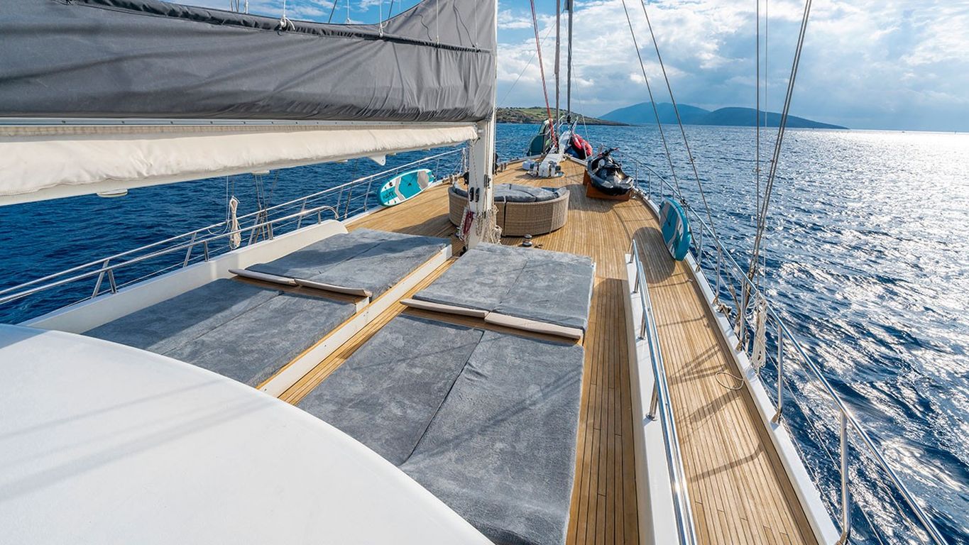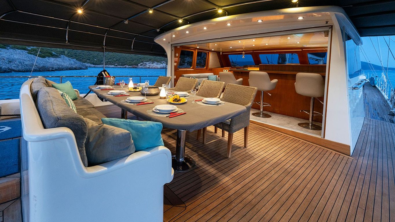 | Die Gulet Lucky You ist eine 37 Meter lange Luxusgulet, die 2012 gebaut wurde und Gästen Eleganz, Raum und modernen Komfort bietet. Das Schiff verfügt über fünf Kabinen – zwei VIP-, eine Master- und zwei Doppelkabinen – alle mit eigenem Bad und Klimaanlage, und bietet Platz für bis zu zehn Gäste. Die Breite von 7,40 Metern sorgt für großzügige Decksflächen und komfortable Innenräume. Das Deck bietet große Sonnenbereiche, schattige Lounges und einen Esstisch im Freien. Der elegante Salon verfügt über einen Essbereich, eine Lounge und eine moderne Küche. Für Wassersportfreunde bietet die Lucky You eine umfangreiche Auswahl an Aktivitäten: Ein 150 PS Beiboot, Jet-Ski, Stand-up-Paddleboards, Ringo, Kanus, Schnorchel- und Angelausrüstung stehen zur Verfügung. Angetrieben wird sie von zwei 440 PS MAN-Motoren und zwei 27 kVA Generatoren, mit einer Geschwindigkeit von 10 Knoten. Die Klimaanlage ist 24 Stunden täglich in Betrieb, Stromsysteme 12V/24V/220V. Die Lucky You ist ideal für Familien oder Gruppen, die ein luxuriöses Blauer-Reise-Erlebnis mit umfassender Ausstattung und Wassersportmöglichkeiten suchen. |