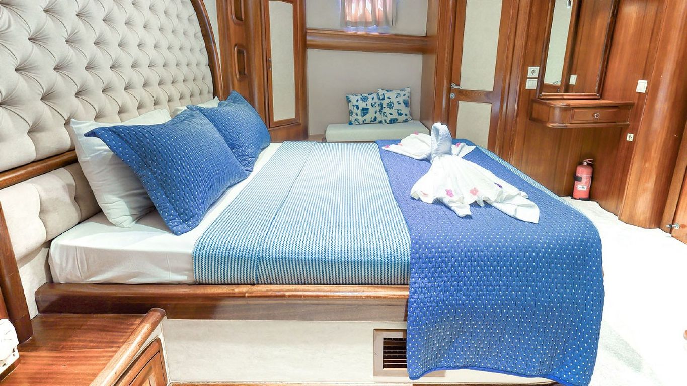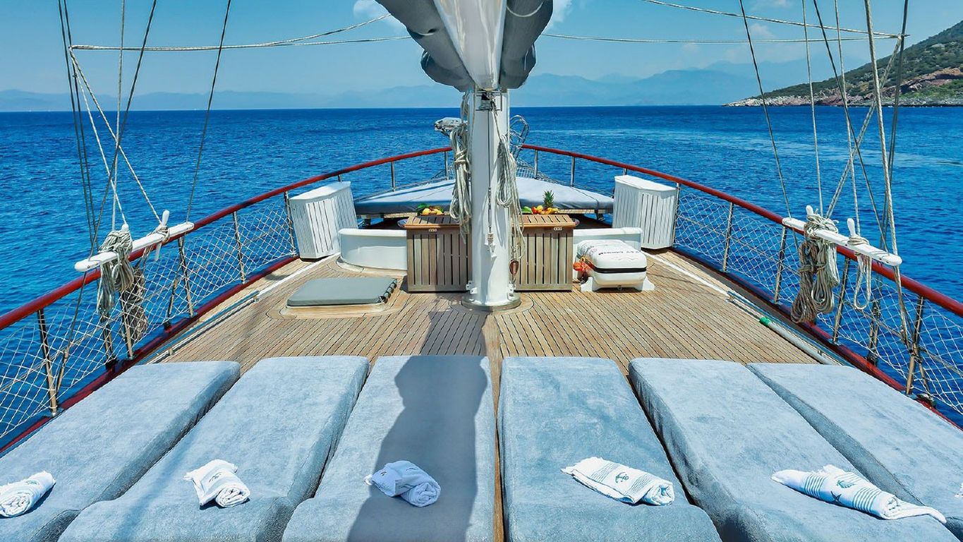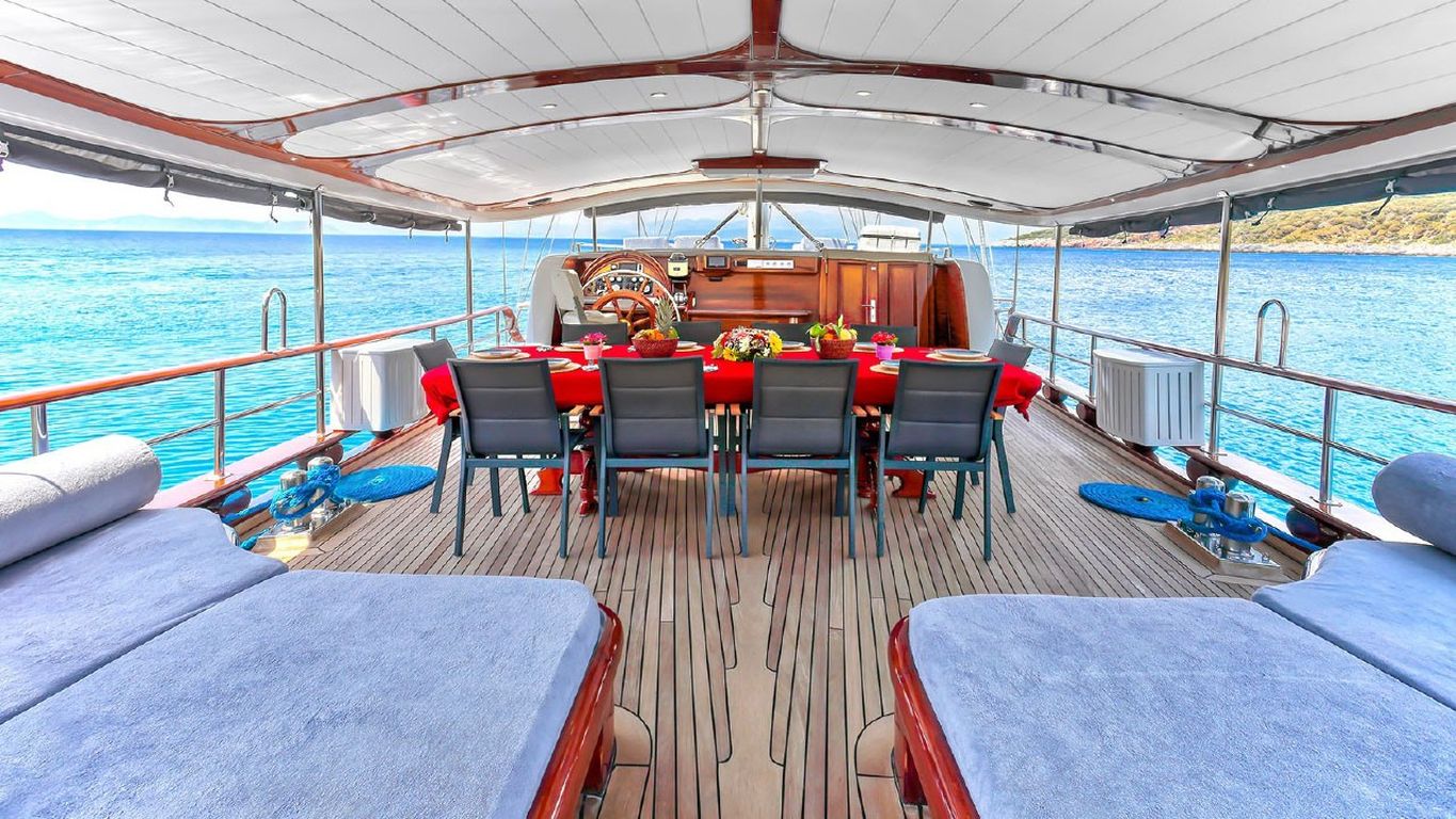 | Die Gulet Mehmet Ayaz ist eine 24 Meter lange Gulet, gebaut 2008 und 2019 renoviert. Sie vereint Komfort, Stil und Eleganz auf See. Mit fünf Kabinen – zwei Master- und drei Doppelzimmern – bietet sie Platz für bis zu zehn Gäste. Die 6,60 Meter Breite sorgt für geräumige Innen- und Außenbereiche. An Deck gibt es schattige Essbereiche, gepolsterte Sitze und große Sonnenzonen. Der Innenraum verfügt über einen Salon mit Esstisch, Sitzgruppe und gut ausgestatteter Küche. Für Wasseraktivitäten bietet Mehmet Ayaz ein 30 PS Beiboot, Stand-up-Paddleboards, Wasserski, Ringo, Kanus, Schnorchel- und Angelausrüstung. Angetrieben wird sie von zwei 280 PS Delphin-Motoren und zwei Generatoren (22,5 + 9 kVA), die eine Geschwindigkeit von 8 Knoten ermöglichen. Klimaanlage: 6 Stunden täglich, Stromsysteme 12V/24V/220V. Die Mehmet Ayaz ist ideal für Familien oder kleine Gruppen, die eine entspannte und zugleich aktive Blaue Reise entlang der türkisen Buchten erleben möchten. |