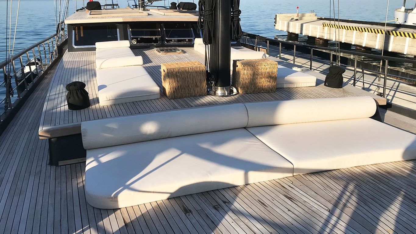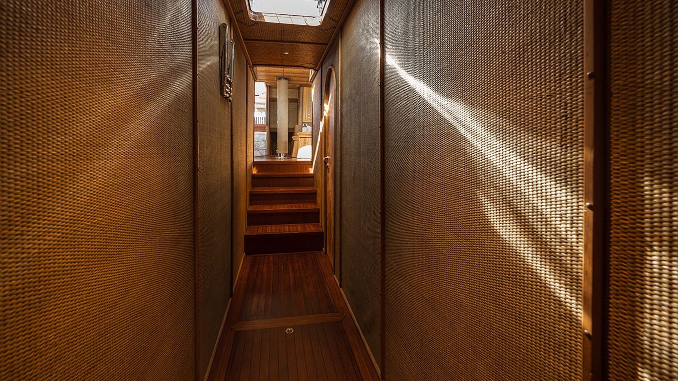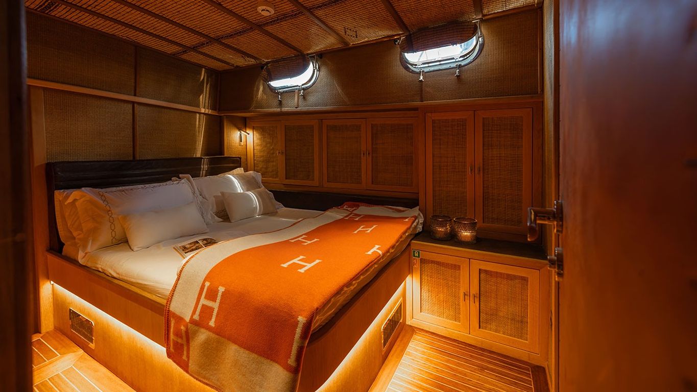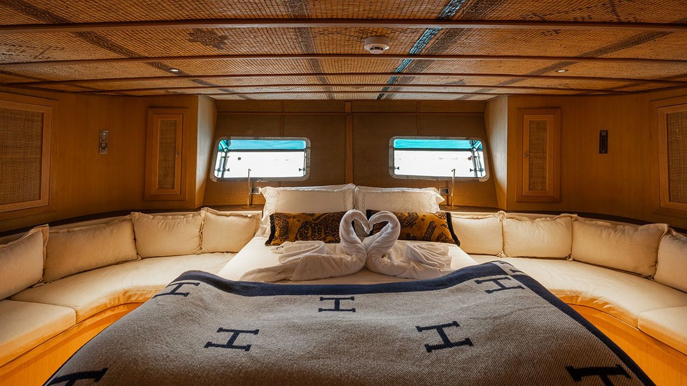 | Kapazität für bis zu 10 Gäste; 1 Masterkabine, 4 Doppelkabinen, Duschkabine und Toiletten in allen Kabinen, separate Mannschaftskabinen. |