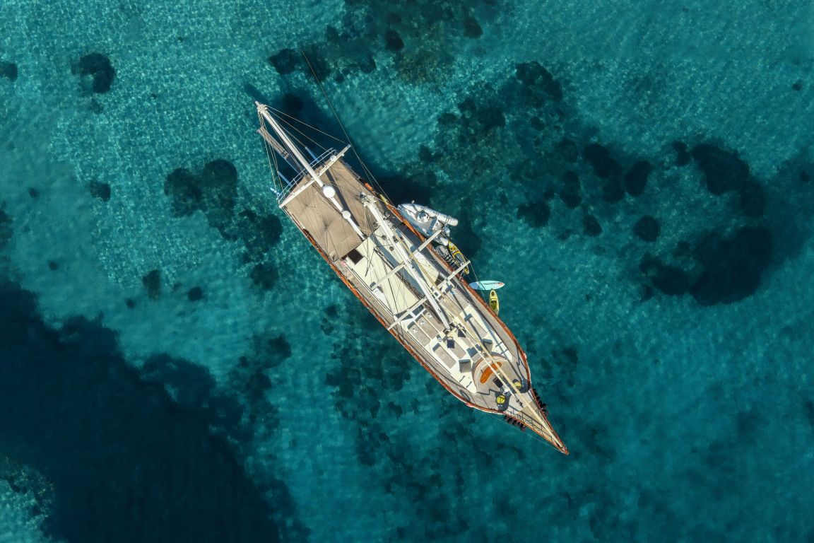 Unsere 30 m lange Gulet Aegean Schatz wurde 2005 gebaut. Ihre endgültige Form erhielt sie mit der Renovierung und Sanierung, die sie 2013 durchlief. Unser Boot verfügt über 5 Kabinen: 2 Master, 2 Double und 1 Twin-Kabinen, jede stilvoller und komfortabler als die andere, mit eigener Dusche, WC und Klimaanlage. 3 Es gibt separate Wohnbereiche, eine voll ausgestattete Küche, Essbereiche im Innen und Außenbereich sowie Ruhebereiche für die Besatzung. Es gibt ausreichend Sonnenkissen, Stühle und Serviersets für alle Gäste. Dank seiner vollwertigen Radio, GSM-Telefon und Navigationsausrüstung bietet die Gulet Aegean Schatz; Bodrum, Göcek, Marmaris, Fethiye usw. Sie können sicher zu unseren Zielen der Blauen Kreuzfahrt segeln.
