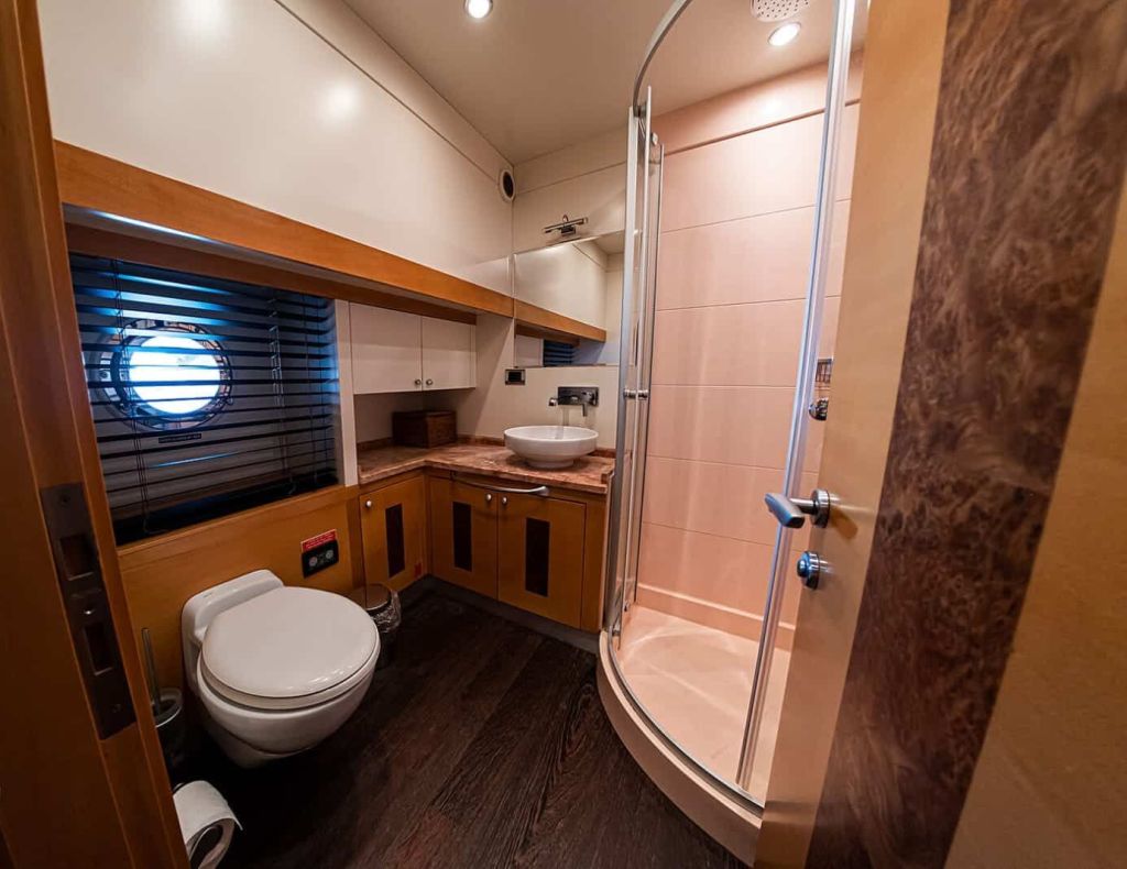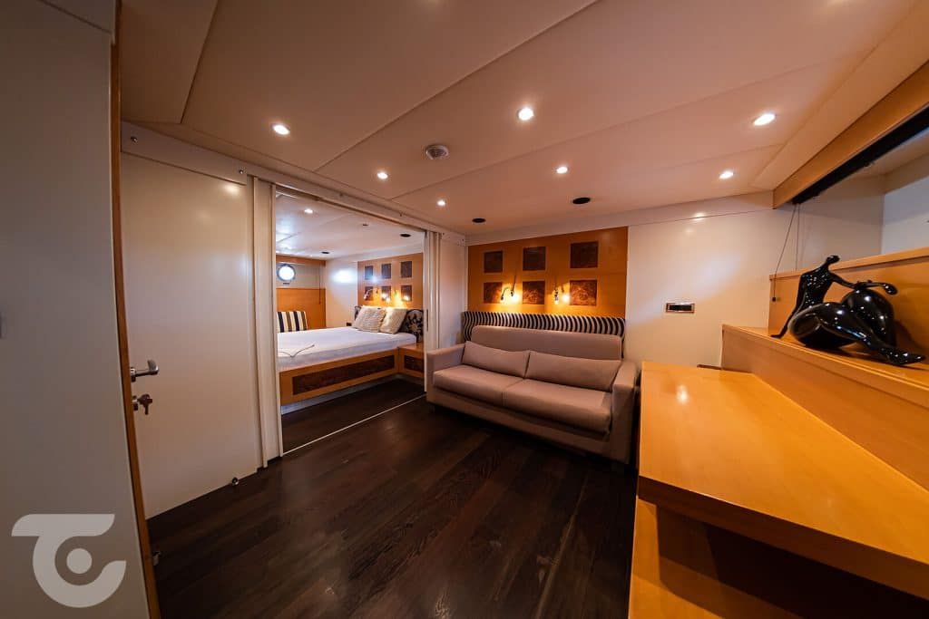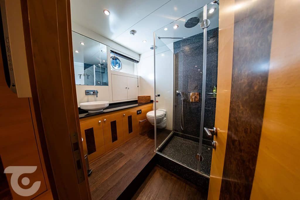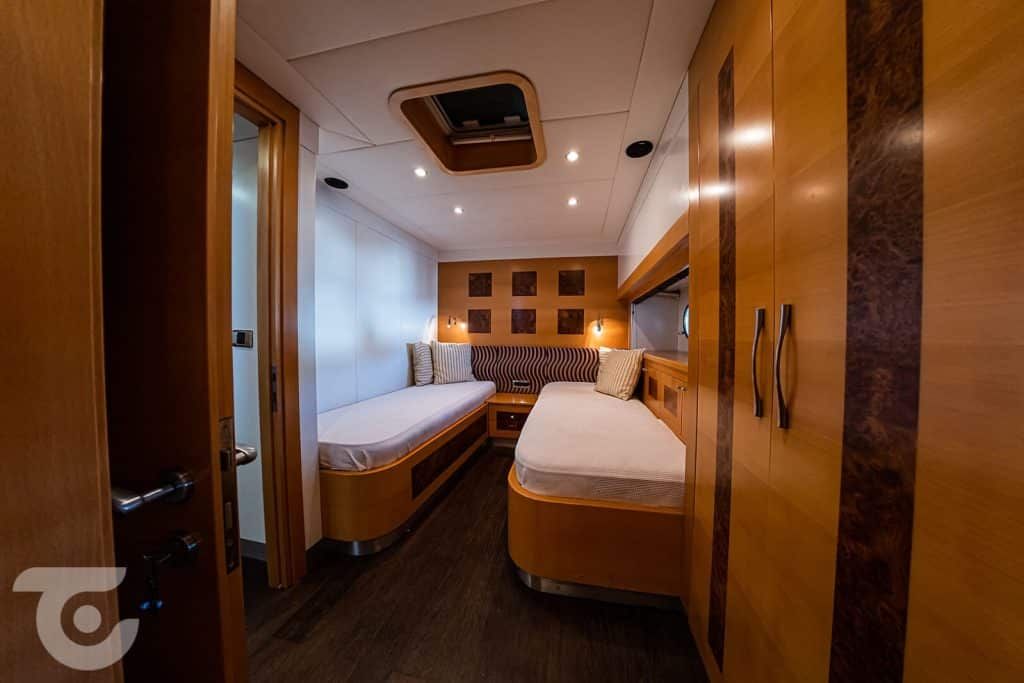 Bis zu 10 Gäste; 1 VIP-, 1 Master-, 1 Doppel-, 2 Zweibettkabinen, Klimaanlage, Kleiderschrank, Duschkabine und Toiletten im Haushaltsstil in allen Kabinen, separate Mannschaftskabinen. |