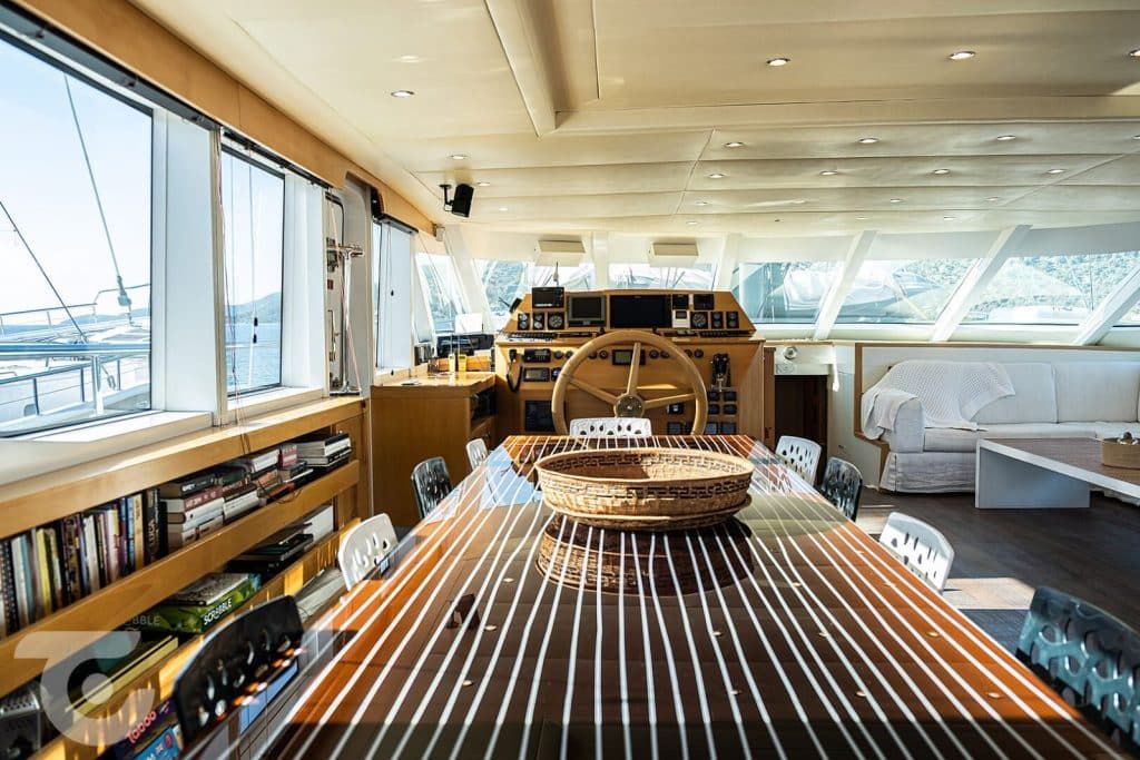 70 PS-Beiboot – 9,9 PS-Serviceboot, Wasserski, Ringo, Kanu, Schnorchelausrüstung, Angelausrüstung, Sonnenmatratzen, Deckdusche, TV/DVD, UKW-Radio, Musikanlage, WLAN-Internetanschluss, Eismaschine, Wasseraufbereitungsanlage, Deck mit Essbereich, Innenesszimmer, Klimaanlage, Vollständige Sicherheitsausrüstung, Navigationsausrüstung, Küchenausstattung, Radar, GPS, Kompass, Autopilot, Kartenplotter |