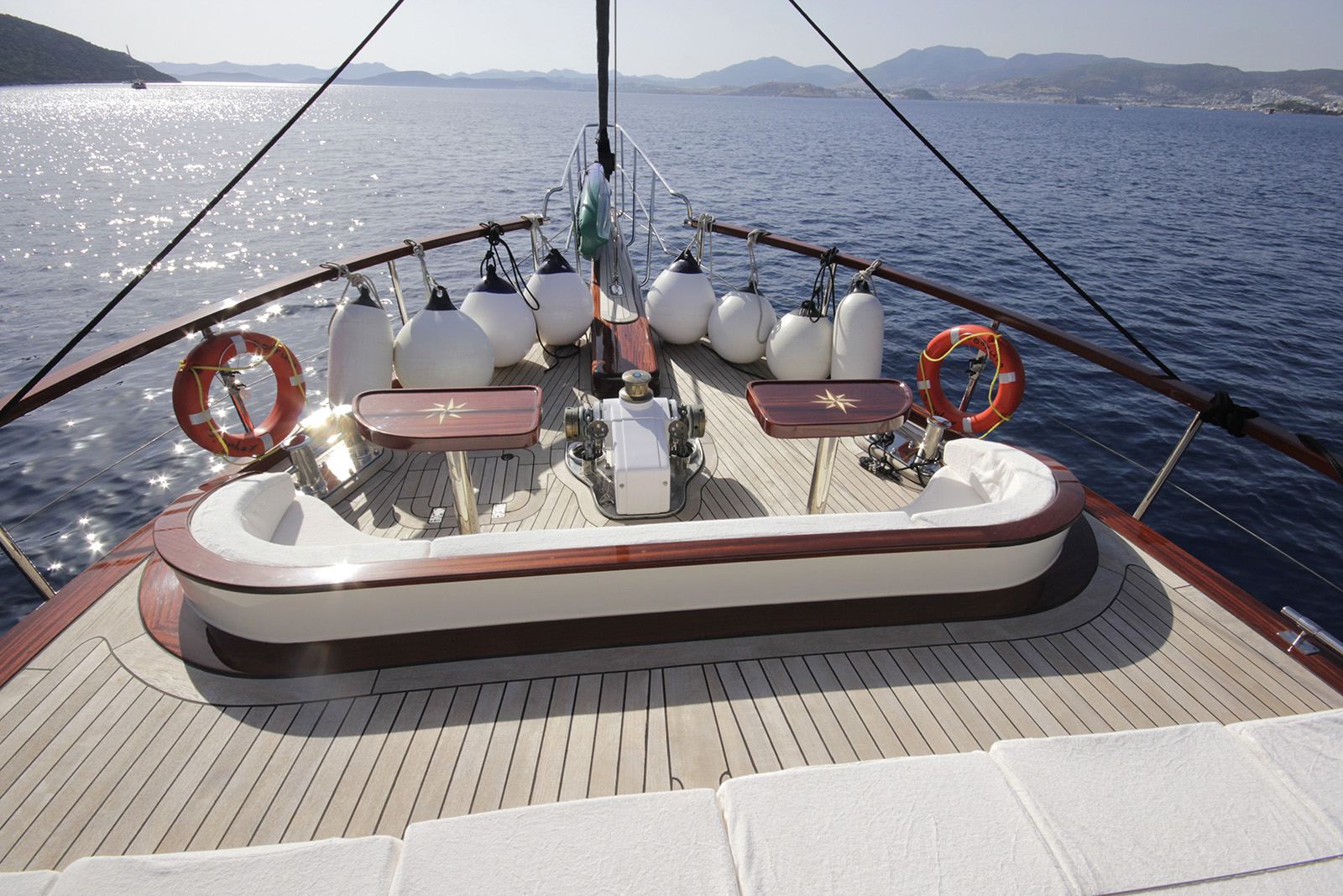 Unser 24 m langes Gulet Zeynos wurde 2015 gebaut. Unser Boot verfügt über 5 Kabinen, darunter 2 Master-, 1 Doppel- und 2 Dreibettkabinen, jede stilvoller und komfortabler, mit eigener Dusche, WC und Klimaanlage. 3 Es gibt separate Wohnbereiche, eine voll ausgestattete Küche, Essbereiche im Innen- und Außenbereich sowie Ruhebereiche für die Besatzung. Es gibt ausreichend Sonnenkissen, Stühle und Serviersets für alle Gäste. Gulet Zeynos verfügt dank seiner vollwertigen Radio-, GSM-Telefon-Navigationsausrüstung; Bodrum, Göcek, Marmaris, Fethiye usw. Sie können sicher zu unseren Zielen der Blauen Kreuzfahrt segeln.