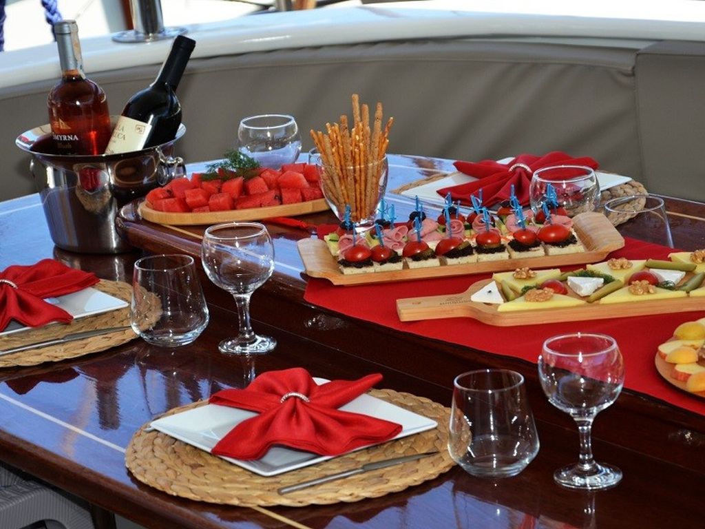 | Beiboot 60 PS, Kanu, Paddelbrett, Angelausrüstung, Schnorchelausrüstung, Eismaschine, Gefrierschrank, Kaffeemaschine, Espressomaschine, Indoor-Lounge, Seeleiter, Schattenzelte, Herd, Sonnenliegen, unbegrenztes WLAN |