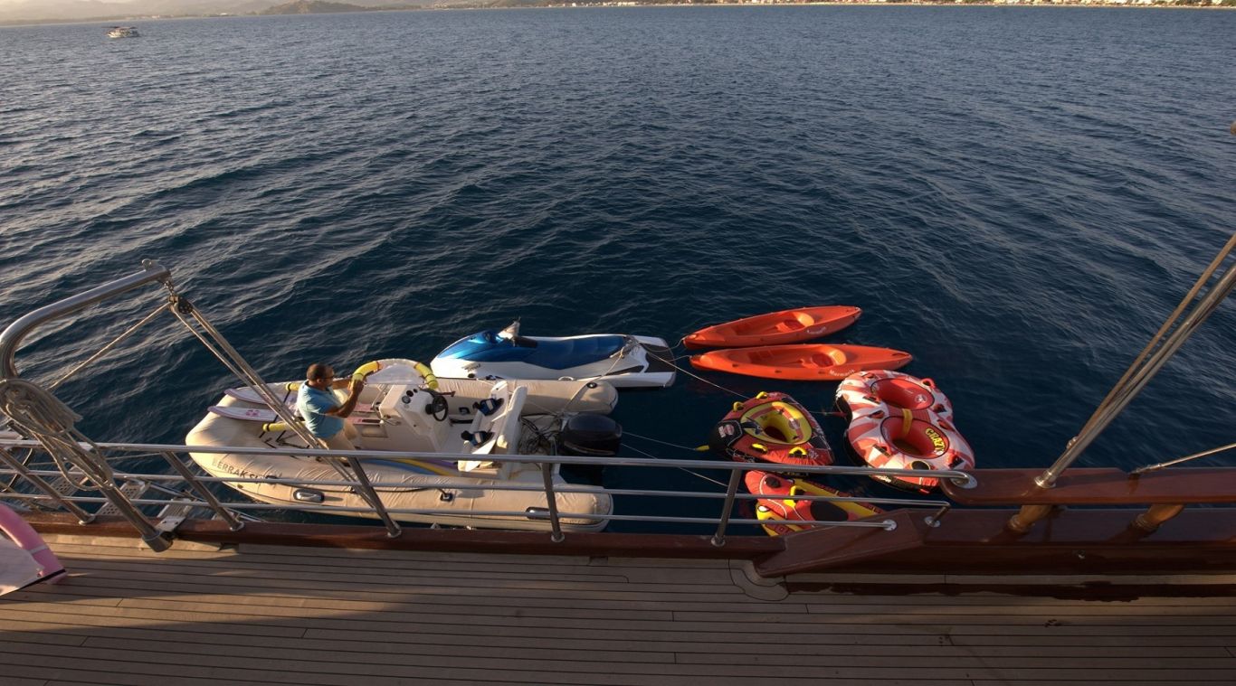 Das Gulet Berrak Su wurde 2008 gebaut und 2010, 2014 und 2017 nach neuen Technologien renoviert. Es bietet Ihnen eine Blaue Reise mit einer Länge von 33 Metern. Es gibt 6 Doppelkabinen, jede mit eigener Dusche, WC und Klimaanlage. Sie können mit unserem Boot Berrak Su eine angenehme und unterhaltsame Blaue Reise auf einer der Routen Bodrum, Göcek, Marmaris und Fethiye planen. Unser Boot Berrak Su verfügt über separate Essbereiche auf dem Deck und in der Lounge, eine voll ausgestattete Küche, eine amerikanische Bar und separate Wohnbereiche für die Besatzung. Auf dem Deck gibt es Sonnenbereiche, auf denen 12 Personen bequem sonnenbaden können. Es gibt Kanus, Schnorchel, Masken, Flossen und einfache Angelausrüstung, um die Zeit auf See angenehmer zu gestalten, und um die Zeit auf dem Deck unterhaltsamer zu gestalten, gibt es ein Rommé-Set, Backgammon, Spielkarten, einen DVD-Player, ein Musiksystem und eine Klimaanlage. Unser erfahrenes Personal auf dem Boot steht Ihnen bei der Zubereitung von Speisen, dem Service, der täglichen Reinigung und allen Angelegenheiten, die Sie während der Blauen Reise benötigen, zur Verfügung. Der Kapitän und die Besatzung, die über Segelerfahrung verfügen, werden segeln, wenn das Wetter es zulässt, und Sie können das Vergnügen einer Segel-Blauen-Kreuzfahrt in der Ägäis erleben. Um eine preiswerte und angenehme Blaue Tour in türkischen Hoheitsgewässern zu erleben, laden wir Sie zu einer Blauen Reise mit unserer Gulet Berrak Su ein. |