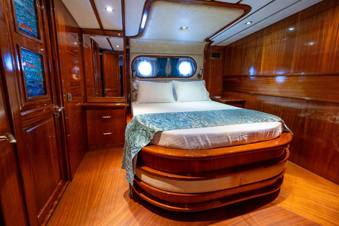 Bis zu 12 Gäste; 6 Kabinen; 2 Master und 4 Doppelkabinen für bis zu 12 Gäste. Jede Kabine ist voll klimatisiert, hat einen Kleiderschrank und ein eigenes Badezimmer mit Duschkabine und Haushaltstoilette. |