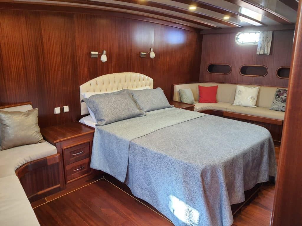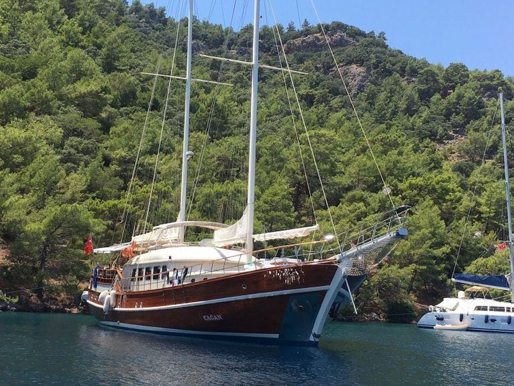 Das Gulet Cagan wurde 2015 gebaut. Es bietet Ihnen eine 30 Meter lange Blaue Reise. Es gibt 6 Doppelkabinen, jede mit eigener Dusche, WC und Klimaanlage. Sie können mit unserem Cagan-Boot eine angenehme und unterhaltsame Blaue Reise auf einer der Routen Bodrum, Göcek, Marmaris und Fethiye planen. Unser Cagan-Boot verfügt über separate Essbereiche auf dem Deck und in der Lounge, eine voll ausgestattete Küche, eine amerikanische Bar und separate Wohnbereiche für die Crew. Auf dem Deck gibt es Sonnenbereiche, auf denen 12 Personen bequem sonnenbaden können.