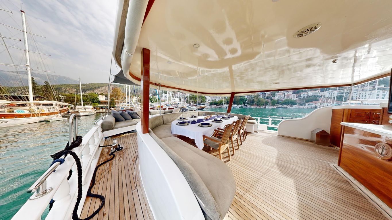 Das Gulet Diamond Lila wurde 2007 gebaut und 2019 nach neuen Technologien renoviert. Es bietet Ihnen eine 30 Meter lange Blaue Reise. Es gibt 6 Doppelkabinen, jede mit eigener Dusche, WC und Klimaanlage. Mit unserem Boot Diamond Lila können Sie eine angenehme und unterhaltsame Blaue Reise auf einer der Routen Bodrum, Göcek, Marmaris und Fethiye planen. Unser Boot Diamond Lila verfügt über separate Essbereiche auf dem Deck und in der Lounge, eine voll ausgestattete Küche, eine amerikanische Bar und separate Wohnbereiche für die Crew. Auf dem Deck gibt es Sonnenbereiche, auf denen 12 Personen bequem sonnenbaden können.