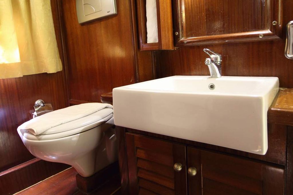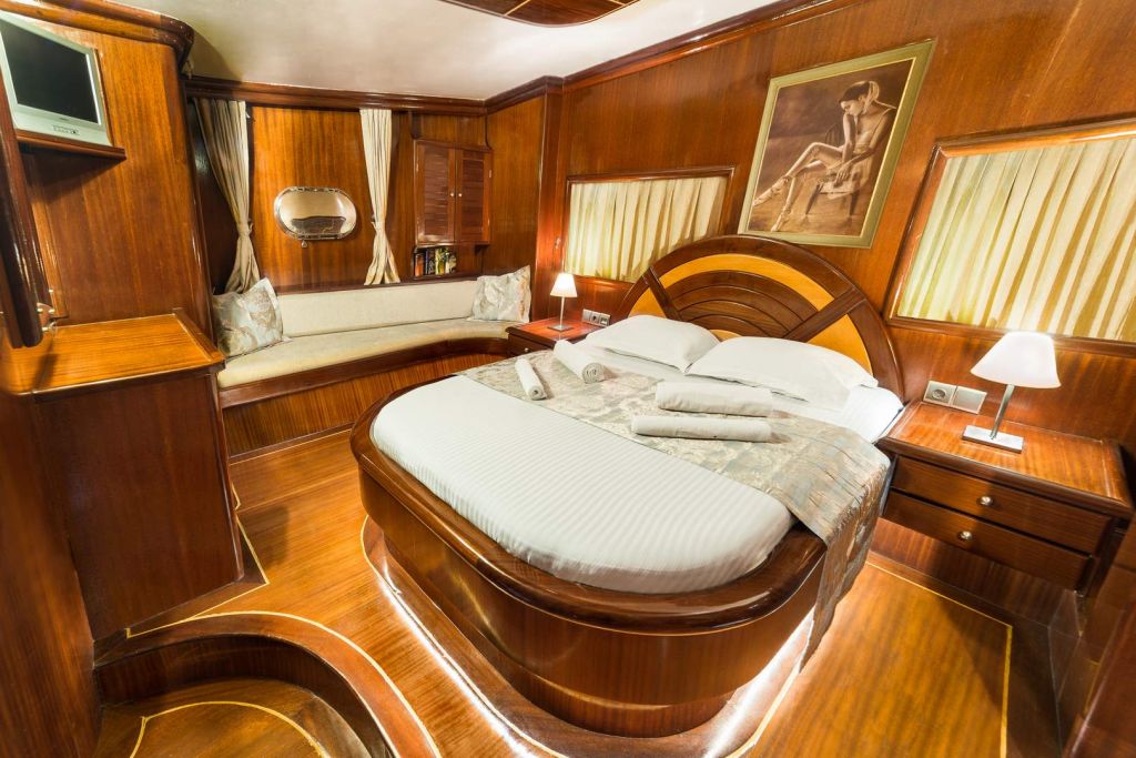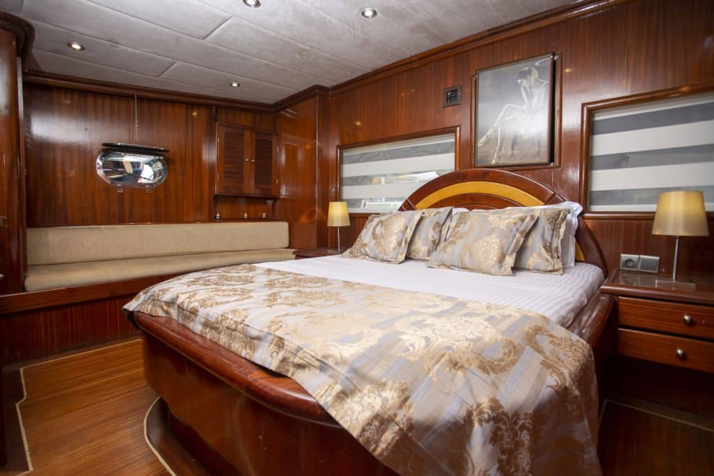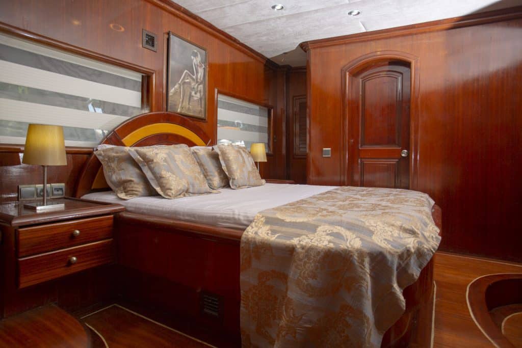 Bis zu 12 Gäste; 2 Masterkabinen, 2 Doppel- und 2 Zweibettkabinen. Minibar in jeder Kabine. 12 Stunden Klimaanlage pro Tag, Kabinenreinigung auf Anfrage; Badezimmer und Toilette werden regelmäßig gereinigt, Kleiderschrank, Duschkabine und Toiletten im Haushaltsstil in allen Kabinen, separate Mannschaftskabinen. |