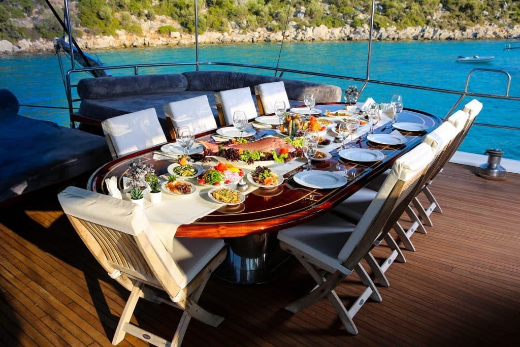 Diese 29 m lange Luxus-Gulet Diva Deniz wurde 2020/2021 komplett renoviert. Wir bieten komfortable Unterbringung für bis zu 12 Gäste in zwei großen Masterkabinen, zwei Doppelkabinen und zwei Twinkabinen. Jede Kabine verfügt über eine eigene Toilette und Dusche. Alle Kabinen, einschließlich der Lounge, sind klimatisiert und können bis zu 12 Stunden am Tag genutzt werden. Sonnenliegen und Sonnenschirme vorne und hinten auf der Yacht sowie ein stilvoll gestalteter Entspannungs- und Essbereich im hinteren Bereich sorgen für Ruhe und Entspannung während Ihres Urlaubs. |