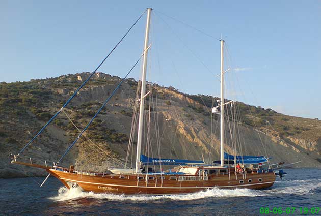 Das Gulet Enderim wurde 2006 gebaut. Es bietet Ihnen eine Blaue Reise mit einer Länge von 29 Metern. Es gibt 6 Doppelkabinen, jede mit eigener Dusche, WC und Klimaanlage. Sie können mit unserem Enderim-Boot eine angenehme und unterhaltsame Blaue Reise auf allen Routen von Bodrum, Göcek, Marmaris und Fethiye planen. Unser Enderim-Boot verfügt über separate Essbereiche auf dem Deck und in der Lounge, eine voll ausgestattete Küche, eine amerikanische Bar und separate Wohnbereiche für die Crew. Auf dem Deck gibt es Sonnenbereiche, auf denen 12 Personen bequem sonnenbaden können.