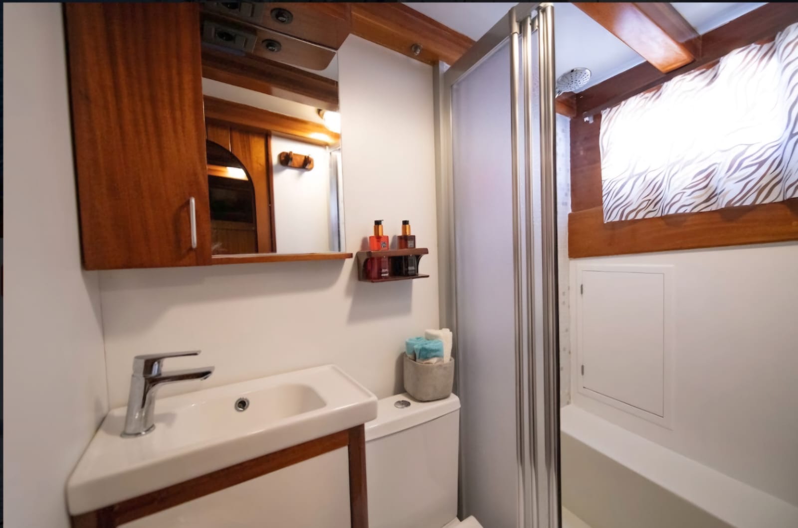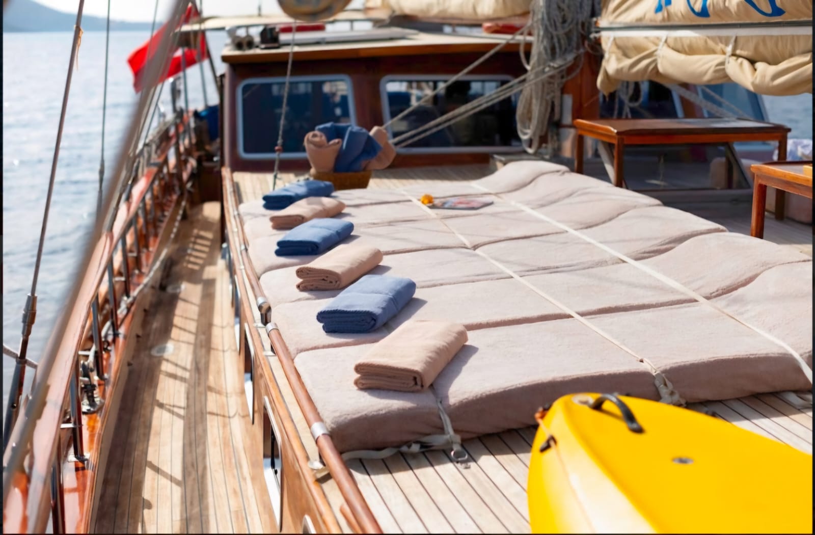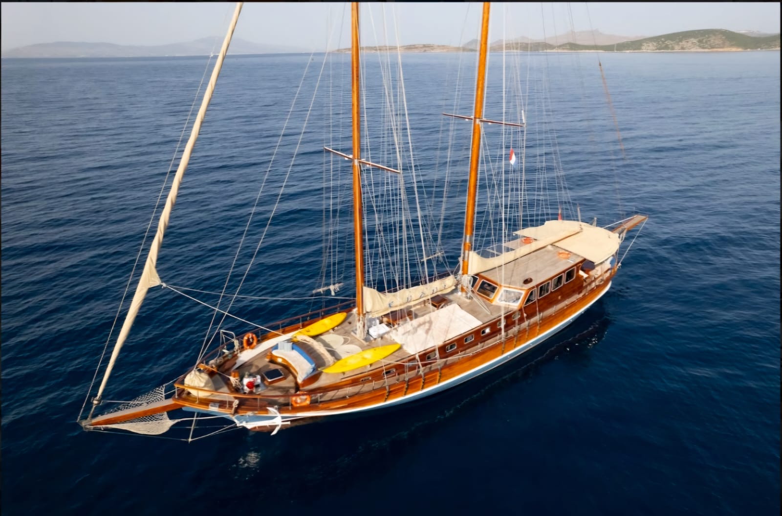 | Die Gulet Kugu 1 ist eine 25 Meter lange traditionelle Holzyacht, gebaut 2002 und 2012 renoviert. Sie verbindet klassischen Stil mit gutem Preis-Leistungs-Verhältnis. Mit sechs Doppelkabinen, jeweils mit eigenem Bad, bietet sie Platz für bis zu zwölf Gäste. Die 6,30 Meter breite Struktur bietet ausreichend Platz auf Deck und im Innenraum. Das Deck bietet schattige und offene Loungebereiche sowie große Sonnenflächen. Der Salon verfügt über einen Essbereich, bequeme Sitze und eine voll ausgestattete Kombüse. Für Wassersport bietet Kugu 1 ein 9,9 PS Beiboot, ein Kanu, Schnorchel- und Angelausrüstung – ideal für entspannte Stunden auf See. Angetrieben wird sie von einem 280 PS Cummins-Motor und einem 18 kVA Generator, mit einer Reisegeschwindigkeit von 12 Knoten. Stromsysteme: 12V/24V/220V. Klimaanlage: 6 Stunden täglich. Die Kugu 1 ist ideal für Familien oder Gruppen, die eine erschwingliche Blaue Reise mit Komfort, Funktionalität und klassischem Charme genießen möchten. |