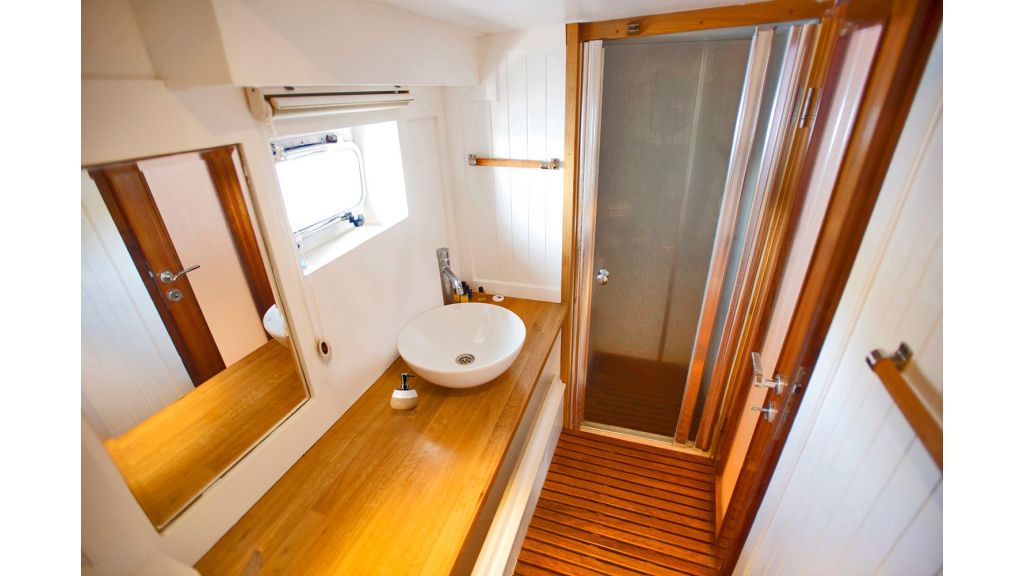 | Bis zu 12 Gästekapazität; 2 Master-, 1 Twin-, 3 Doppelkabinen, Klimaanlage, Duschkabine und Toiletten im Haushaltsstil in allen Kabinen, separate Mannschaftskabinen. |