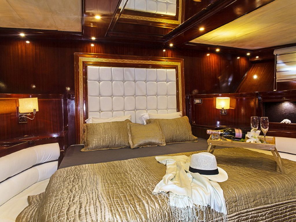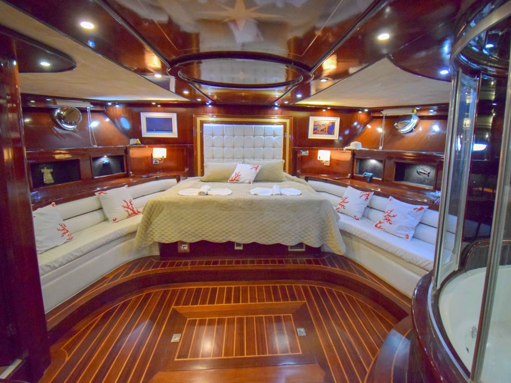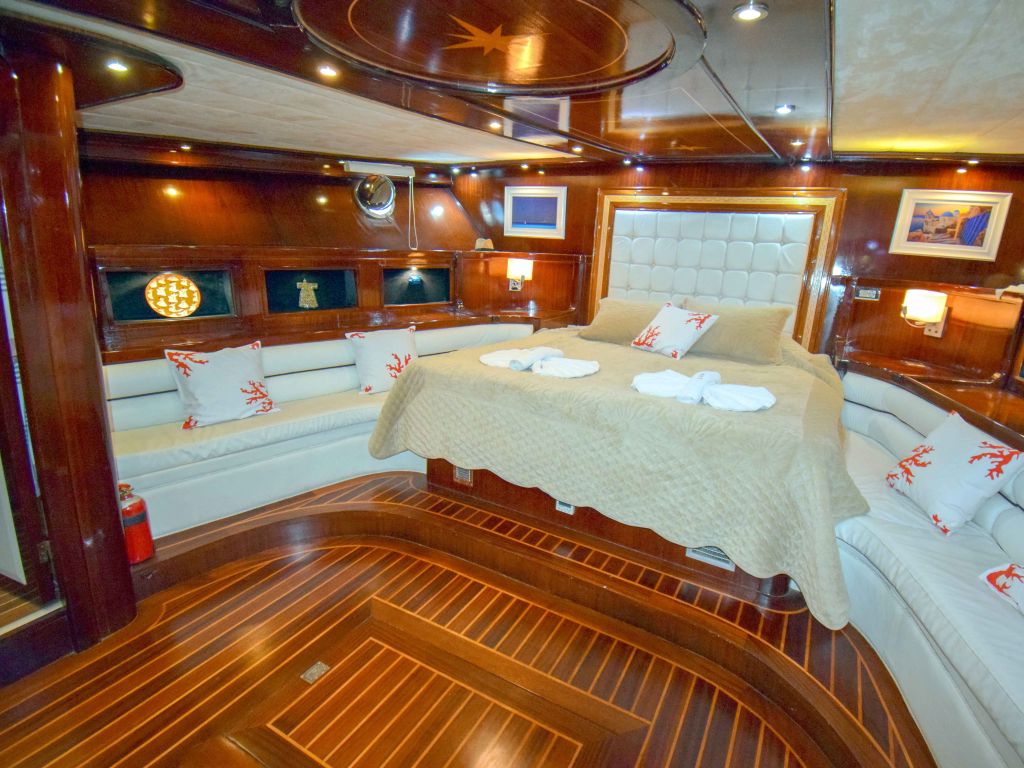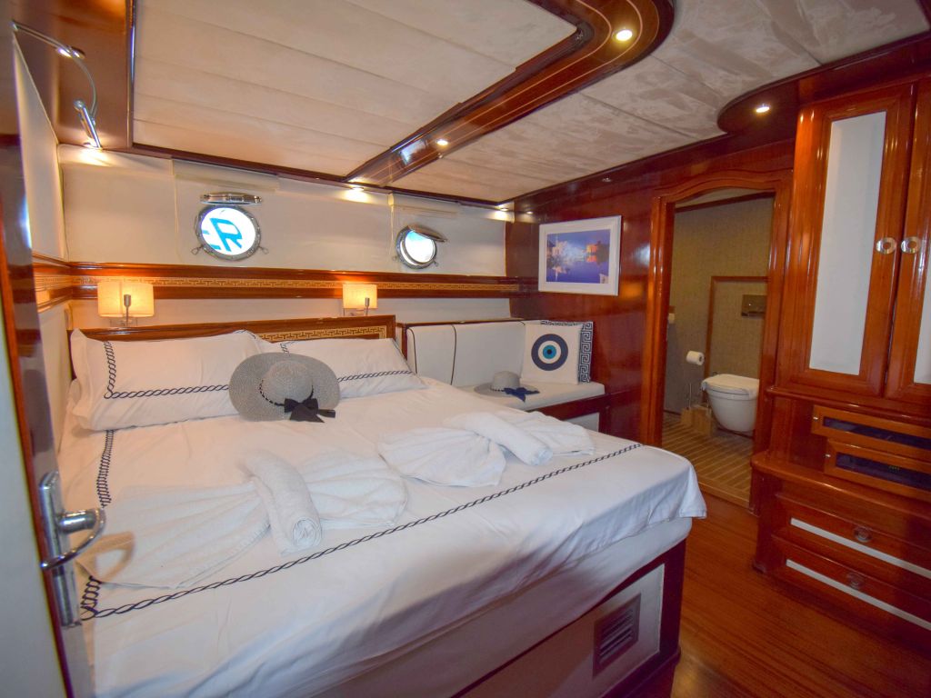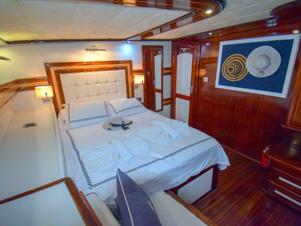 Kapazität für bis zu 12 Gäste; 2 Master, 2 Doppel, 2 Zweibettkabinen, Klimaanlage, Duschkabine und häusliche Toiletten in allen Kabinen, separate Crew-Kabinen. |
