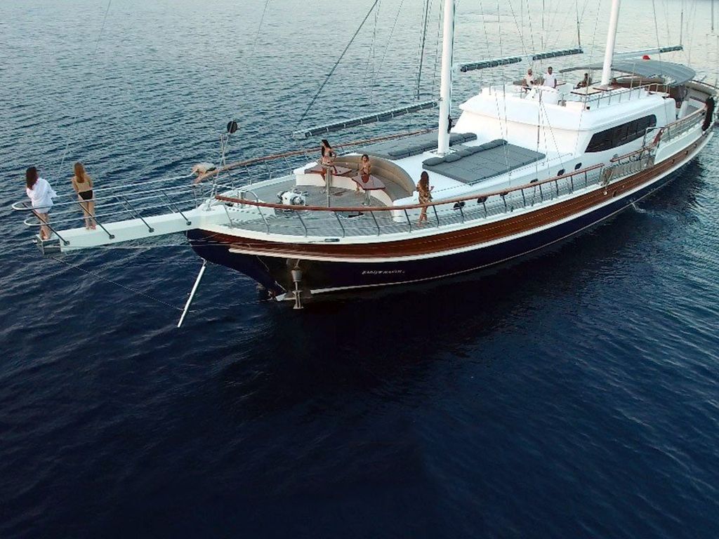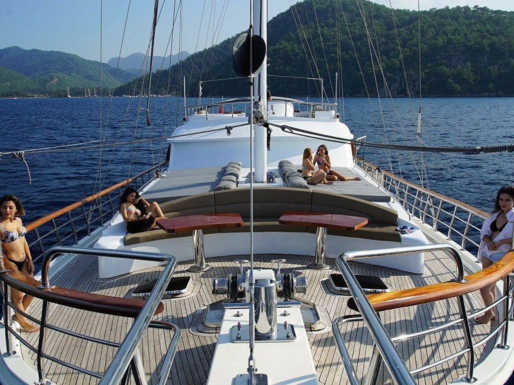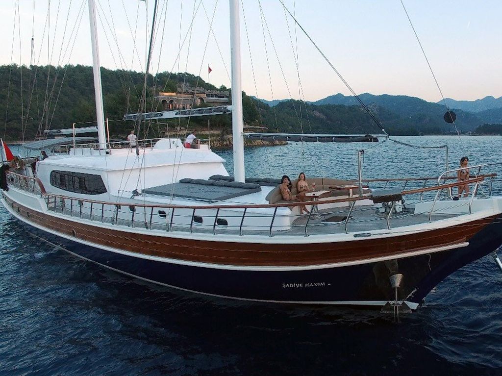 Das Gulet Sadiye Hanim wurde 2018 gebaut. Es bietet Ihnen eine Blaue Reise mit einer Länge von 34 Metern. Es gibt 6 Doppelkabinen, jede mit eigener Dusche, WC und Klimaanlage. Sie können mit unserem Boot Sadiye Hanim eine angenehme und unterhaltsame Blaue Reise auf allen Routen von Bodrum, Göcek, Marmaris und Fethiye planen. Unser Boot, Sadiye Hanim, verfügt über separate Essbereiche auf dem Deck und in der Lounge, eine voll ausgestattete Küche, eine amerikanische Bar und separate Wohnbereiche für die Crew. Auf dem Deck gibt es Sonnenbereiche, auf denen 12 Personen bequem sonnenbaden können.