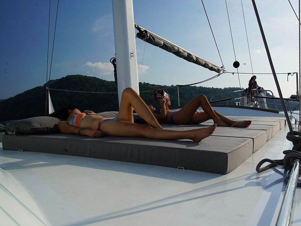 Es gibt Kanus, Schnorchel, Masken, Flossen und einfache Angelausrüstung, um die Zeit auf See angenehmer zu gestalten, und um die Zeit auf dem Deck unterhaltsamer zu gestalten, gibt es ein Rommé-Set, Backgammon, Spielkarten, einen DVD-Player, ein Musiksystem und eine Klimaanlage. Unser erfahrenes Personal auf dem Boot steht Ihnen bei der Zubereitung von Speisen, dem Service, der täglichen Reinigung und allen Angelegenheiten, die Sie während der Blauen Reise benötigen, zur Verfügung. Der Kapitän und die Besatzung, die über Segelerfahrung verfügen, werden segeln, wenn das Wetter es zulässt, und Sie können das Vergnügen einer Segel-Blauen-Kreuzfahrt in der Ägäis erleben. Um eine günstige und angenehme Blaue Kreuzfahrt in türkischen Hoheitsgewässern zu erleben, laden wir Sie zu einer Blauen Reise mit unserem Gulet Sadiye Hanim ein.