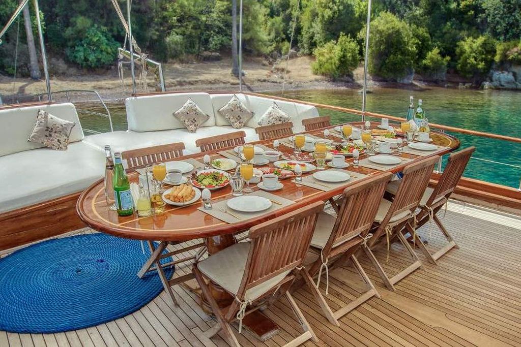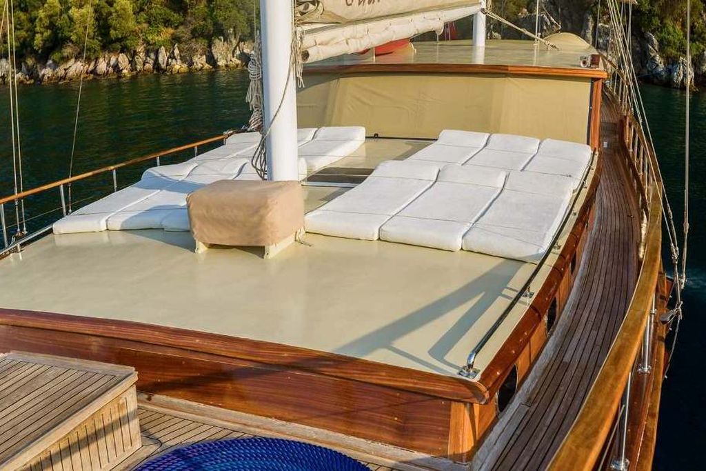 Das Gulet Sude Deniz wurde 1997 gebaut und 2015 nach neuen Technologien renoviert. Es bietet Ihnen eine Blaue Reise mit einer Länge von 24,80 Metern. Es gibt 6 Doppelkabinen, jede mit eigener Dusche, WC und Klimaanlage. Sie können mit unserem Boot Sude Deniz eine angenehme und unterhaltsame Blaue Reise auf einer der Routen Bodrum, Göcek, Marmaris und Fethiye planen. Unser Boot Sude Deniz verfügt über separate Essbereiche auf dem Deck und in der Lounge, eine voll ausgestattete Küche, eine amerikanische Bar und separate Wohnbereiche für die Besatzung. Auf dem Deck gibt es Sonnenbereiche, auf denen 12 Personen bequem sonnenbaden können.