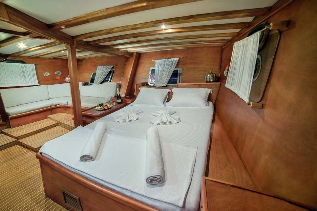 Es gibt Kanus, Schnorchel, Masken, Flossen und einfache Angelausrüstung, um die Zeit auf See angenehmer zu gestalten, und um die Zeit auf dem Deck unterhaltsamer zu gestalten, gibt es ein Rommé-Set, Backgammon, Spielkarten, einen DVD-Player, ein Musiksystem und eine Klimaanlage. Unser erfahrenes Personal auf dem Boot steht Ihnen bei der Zubereitung von Speisen, dem Service, der täglichen Reinigung und allen Angelegenheiten, die Sie während der Blauen Reise benötigen, zur Verfügung. Der Kapitän und die Besatzung, die über Segelerfahrung verfügen, werden segeln, wenn das Wetter es zulässt, und Sie können das Vergnügen einer Segel-Blauen-Kreuzfahrt in der Ägäis erleben. Um eine kostengünstige und angenehme Blaue Tour in türkischen Hoheitsgewässern zu erleben, laden wir Sie zu einer Blauen Reise mit unserem Gulet Sude Deniz ein.