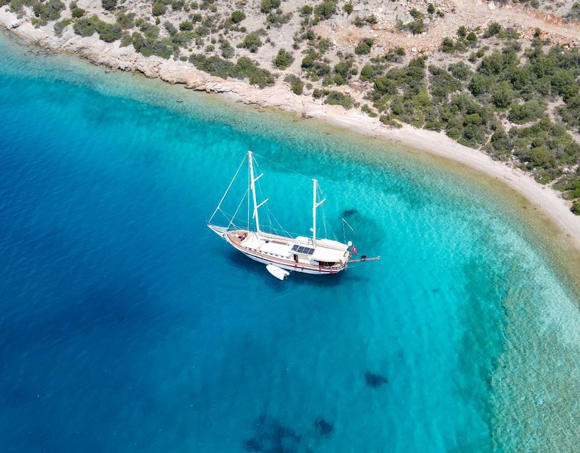Es gibt Kanus, Schnorchel, Masken, Flossen und einfache Angelausrüstung, um die Zeit auf See angenehmer zu gestalten, und um die Zeit auf dem Deck unterhaltsamer zu gestalten, gibt es ein Rommé-Set, Backgammon, Spielkarten, einen DVD-Player, ein Musiksystem und eine Klimaanlage. Unser erfahrenes Personal auf dem Boot steht Ihnen bei der Zubereitung von Speisen, dem Service, der täglichen Reinigung und allen Angelegenheiten, die Sie während der Blauen Reise benötigen, zur Verfügung. Der Kapitän und die Besatzung, die über Segelerfahrung verfügen, werden segeln, wenn das Wetter es zulässt, und Sie können das Vergnügen einer Segel-Blauen-Kreuzfahrt in der Ägäis erleben. Um eine preiswerte und angenehme Blaue Tour in türkischen Hoheitsgewässern zu erleben, laden wir Sie zu einer Blauen Reise mit unserer Ulucinar-Gulet ein.