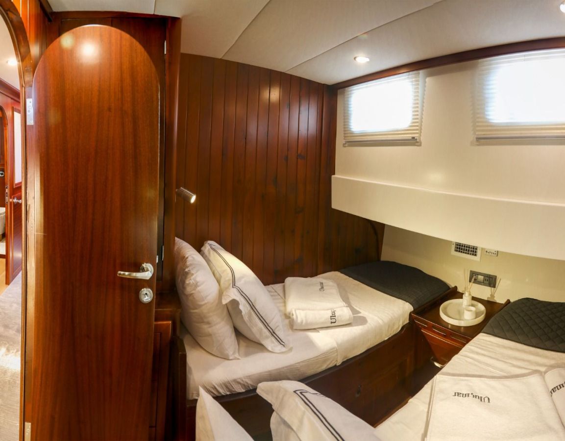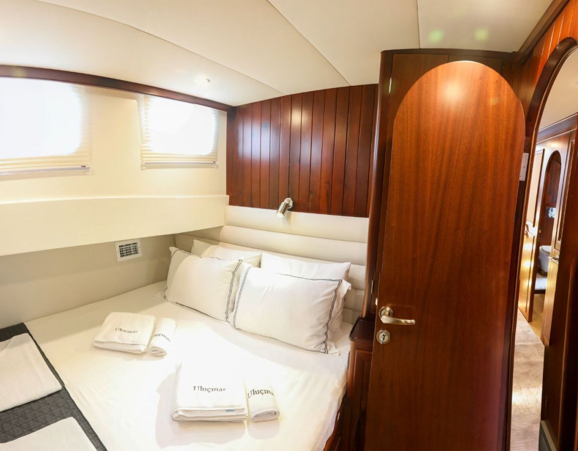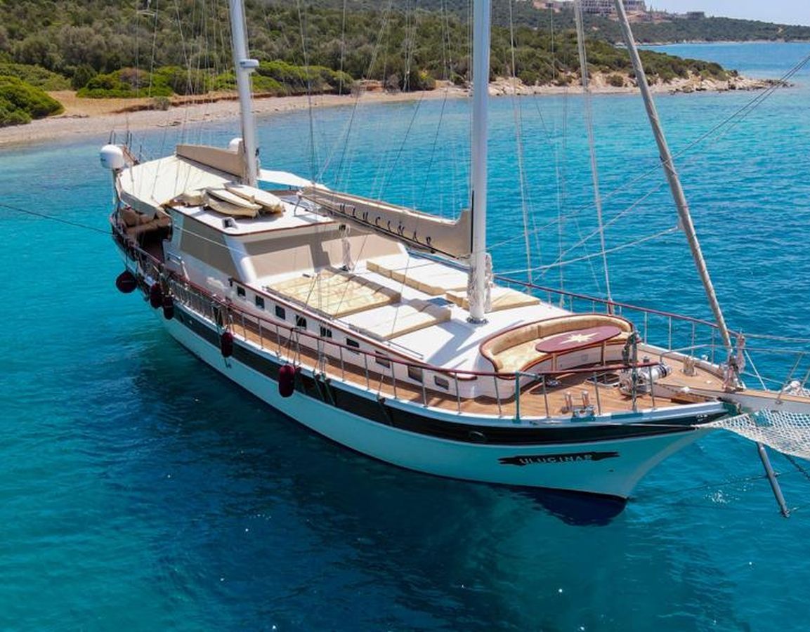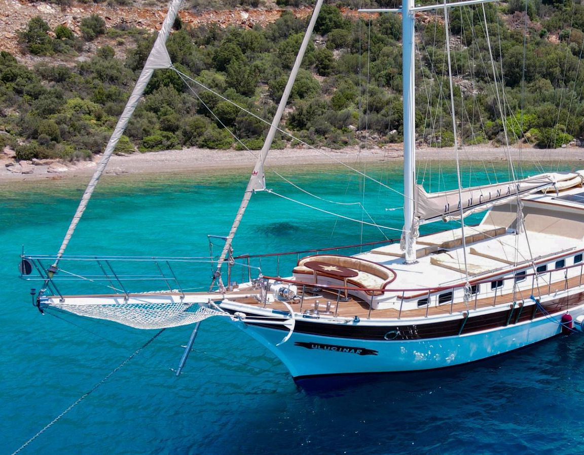 Das Gulet Ulucinar wurde im Jahr 2000 gebaut und 2014 nach neuen Technologien renoviert. Es bietet Ihnen eine 25 Meter lange Blaue Reise. Es gibt 6 Doppelkabinen, jede mit eigener Dusche, WC und Klimaanlage. Mit unserem Ulucinar-Boot können Sie eine angenehme und unterhaltsame Blaue Reise auf einer der Routen Bodrum, Göcek, Marmaris und Fethiye planen. Unser Ulucinar-Boot verfügt über separate Essbereiche auf dem Deck und in der Lounge, eine voll ausgestattete Küche, eine amerikanische Bar und separate Wohnbereiche für die Crew. Auf dem Deck gibt es Sonnenbereiche, auf denen 12 Personen bequem sonnenbaden können.