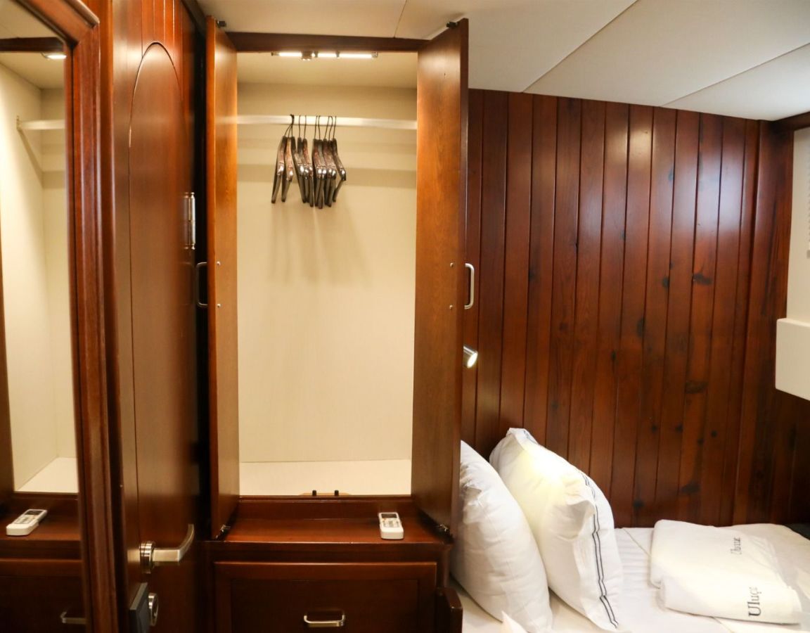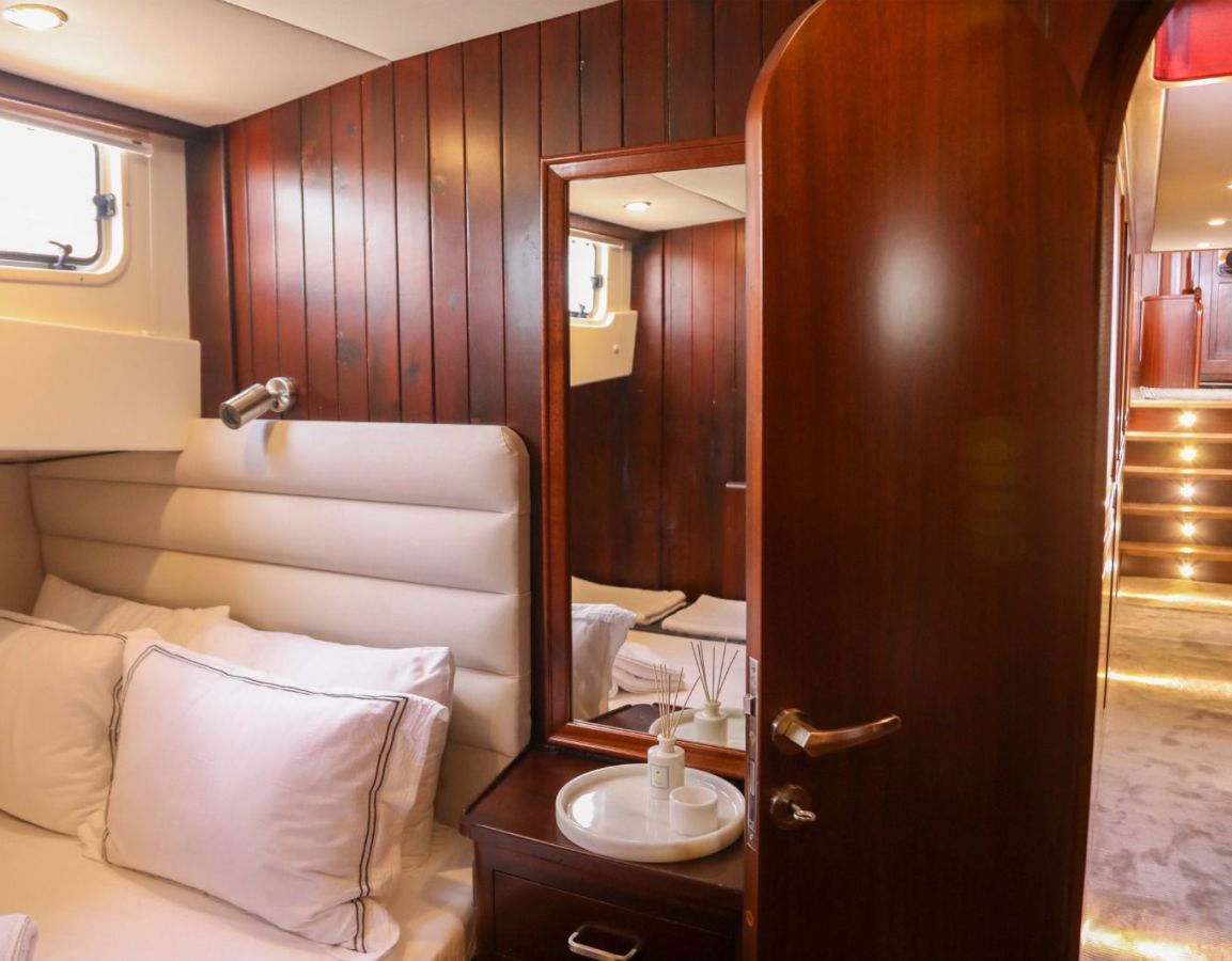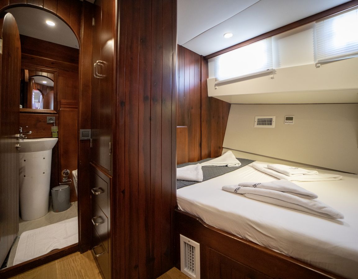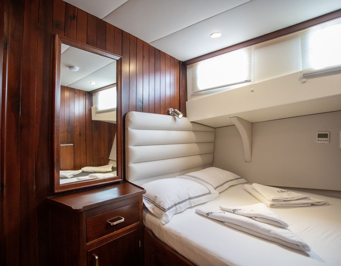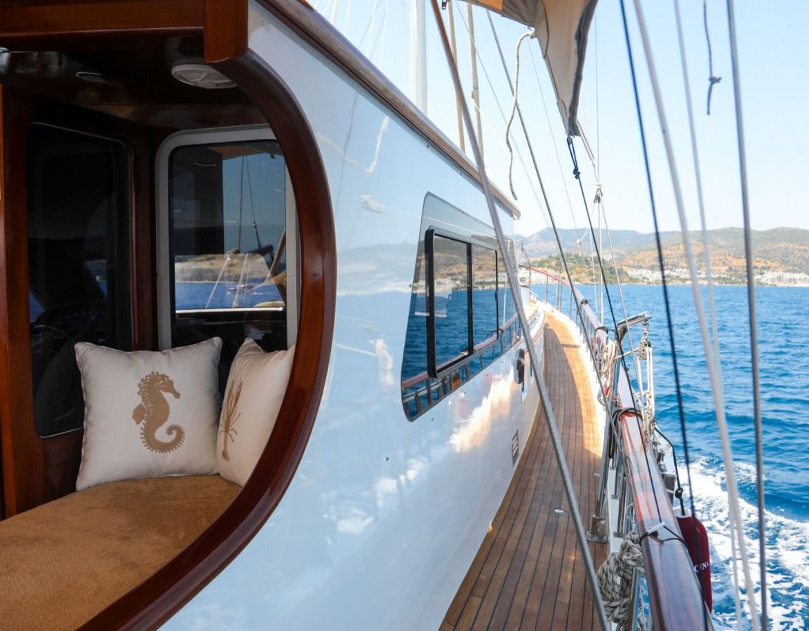 Das Gulet Ulucinar wurde im Jahr 2000 gebaut und 2014 nach neuen Technologien renoviert. Es bietet Ihnen eine 25 Meter lange Blaue Reise. Es gibt 6 Doppelkabinen, jede mit eigener Dusche, WC und Klimaanlage. Mit unserem Ulucinar-Boot können Sie eine angenehme und unterhaltsame Blaue Reise auf einer der Routen Bodrum, Göcek, Marmaris und Fethiye planen. Unser Ulucinar-Boot verfügt über separate Essbereiche auf dem Deck und in der Lounge, eine voll ausgestattete Küche, eine amerikanische Bar und separate Wohnbereiche für die Crew. Auf dem Deck gibt es Sonnenbereiche, auf denen 12 Personen bequem sonnenbaden können.