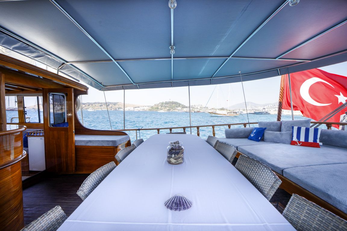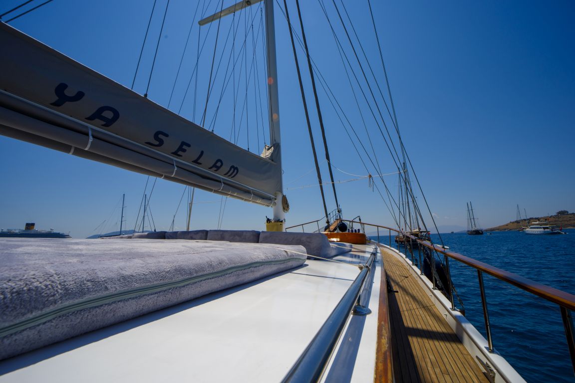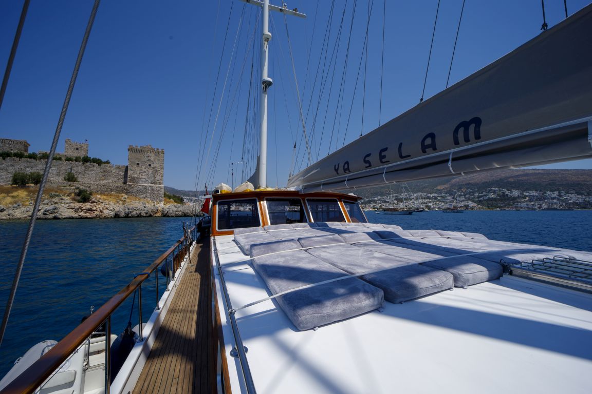Das große und komfortable Wohnzimmer ist mit Geräten wie Fernseher, Satellitenfernsehen und CD-Player ausgestattet, um Ihre Zeit außerhalb des Meeres noch angenehmer zu gestalten. Während Sie die in unserer voll ausgestatteten Küche zubereiteten Mahlzeiten genießen, können Sie auch jeden Blauton entdecken. Wir haben 4 erfahrene Mitarbeiter auf unserer Gulet und unser Personal wird Sie beim Service, der Essenszubereitung, der täglichen Reinigung und allen anderen Angelegenheiten, die Sie benötigen, unterstützen. Wir garantieren eine hundertprozentige Kundenzufriedenheit auf unserer Yacht basierend auf dem Feedback und den Referenzen, die wir in den letzten Jahren von unseren Kunden während der Vermietungen erhalten haben, die wir mit unserer Gulet Ya Selam in Bodrum vorgenommen haben. Wir laden Sie ein, die Küsten von Bodrum – Gökova – Marmaris – Hisaronu – Göcek Fethiye mit Gulet Ya Selam zu erkunden.