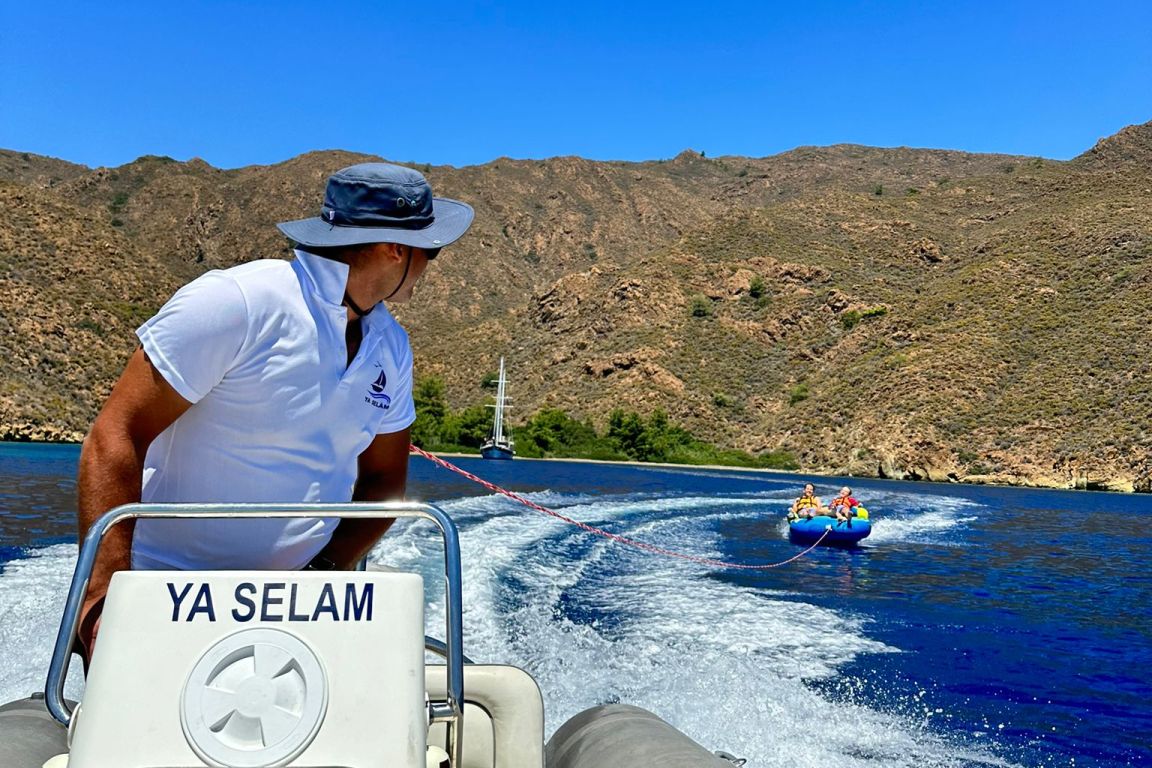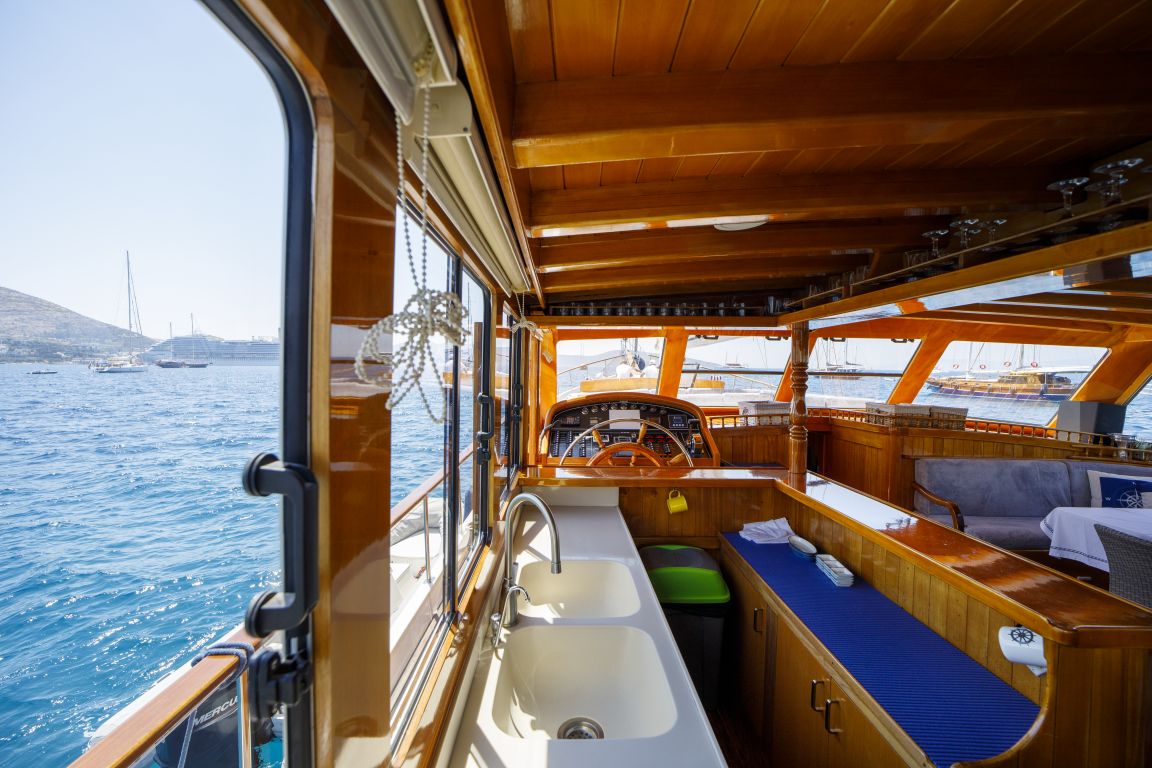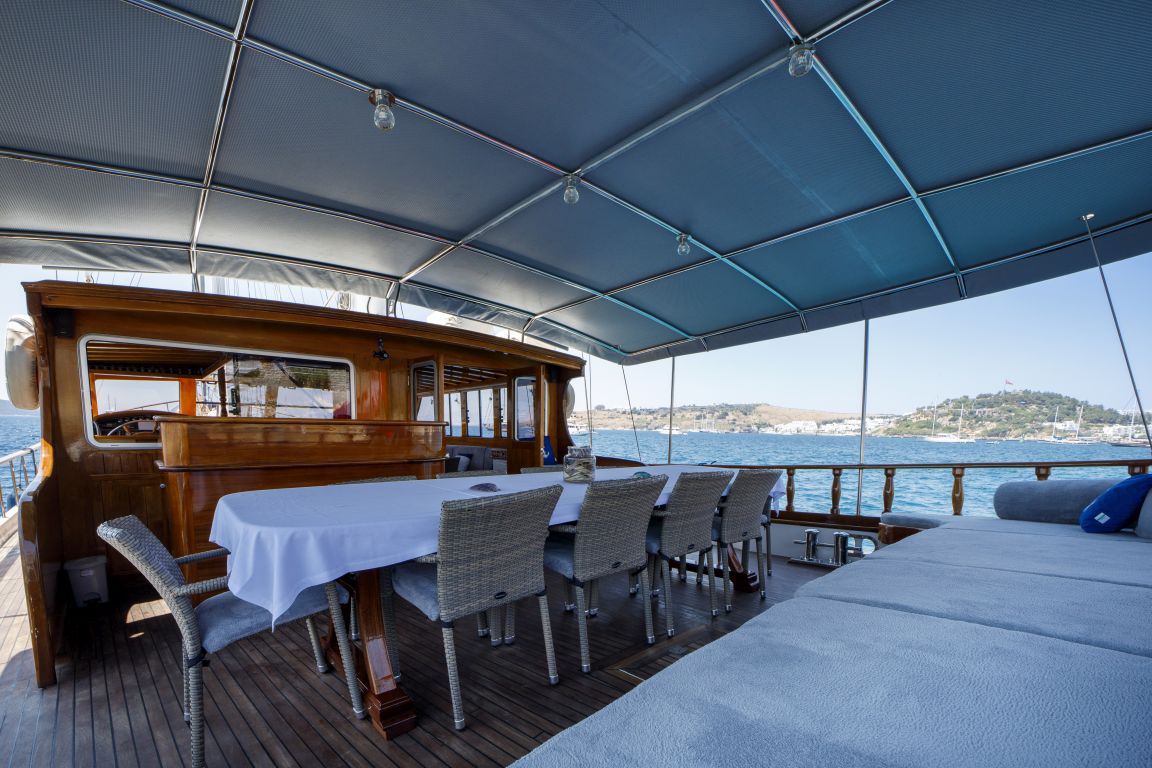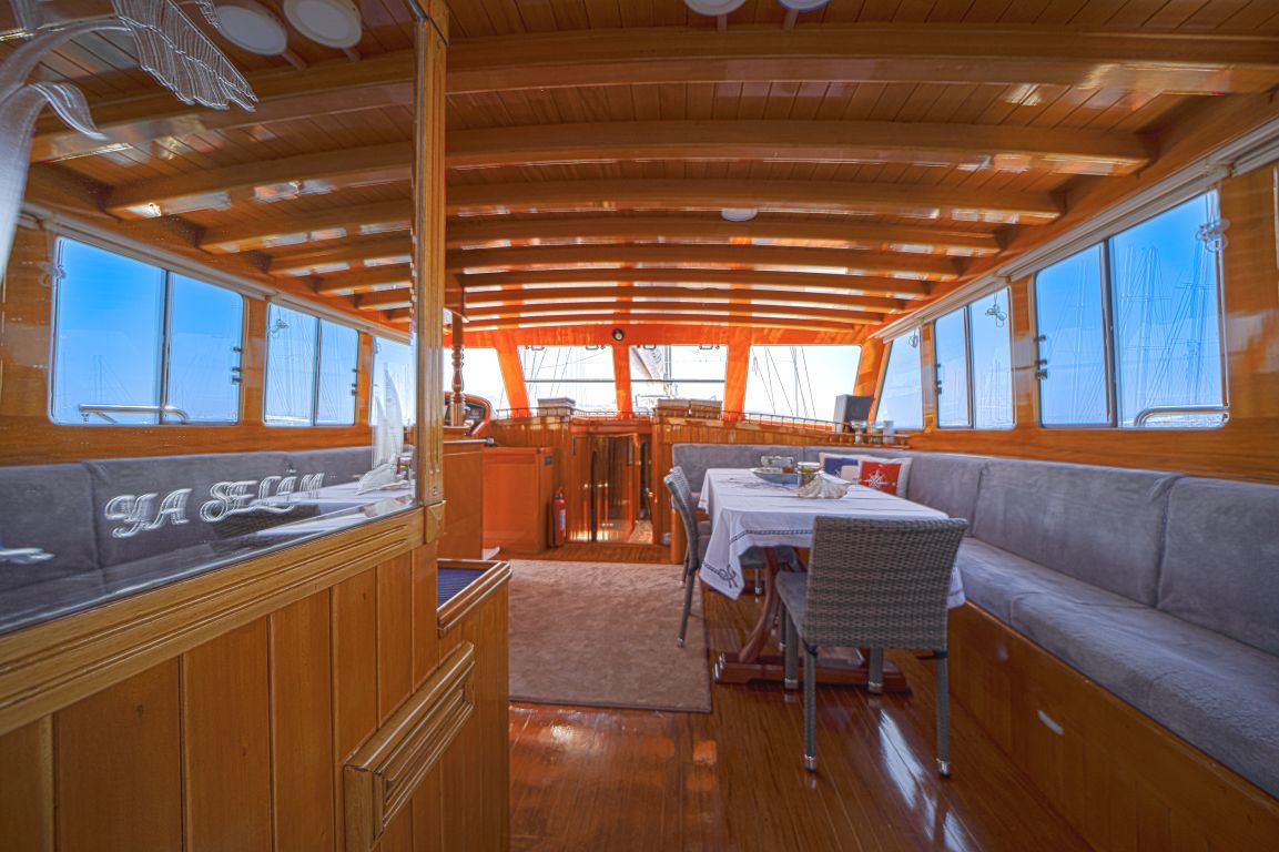 Das große und komfortable Wohnzimmer ist mit Geräten wie Fernseher, Satellitenfernsehen und CD-Player ausgestattet, um Ihre Zeit außerhalb des Meeres noch angenehmer zu gestalten. Während Sie die in unserer voll ausgestatteten Küche zubereiteten Mahlzeiten genießen, können Sie auch jeden Blauton entdecken. Wir haben 4 erfahrene Mitarbeiter auf unserer Gulet und unser Personal wird Sie beim Service, der Essenszubereitung, der täglichen Reinigung und allen anderen Angelegenheiten, die Sie benötigen, unterstützen. Wir garantieren eine hundertprozentige Kundenzufriedenheit auf unserer Yacht basierend auf dem Feedback und den Referenzen, die wir in den letzten Jahren von unseren Kunden während der Vermietungen erhalten haben, die wir mit unserer Gulet Ya Selam in Bodrum vorgenommen haben. Wir laden Sie ein, die Küsten von Bodrum – Gökova – Marmaris – Hisaronu – Göcek Fethiye mit Gulet Ya Selam zu erkunden.
