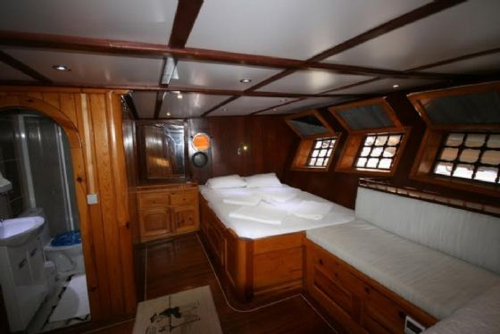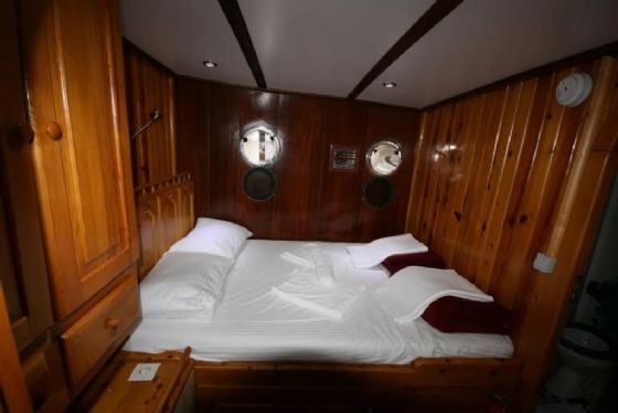 Unser 8-Kabinen-Gulet hat 6 Doppel- und 2 Zweibettkabinen mit Klimaanlage, Toilette und Dusche in jeder Kabine und bietet problemlos Platz für insgesamt 16 Gäste. Das große und komfortable Wohnzimmer ist mit Geräten wie Fernseher, Satellitenfernsehen und CD-Player ausgestattet, um Ihre Zeit außerhalb des Meeres noch angenehmer zu gestalten. Während Sie die in unserer voll ausgestatteten Küche zubereiteten Mahlzeiten genießen, können Sie auch jeden Blauton entdecken.
