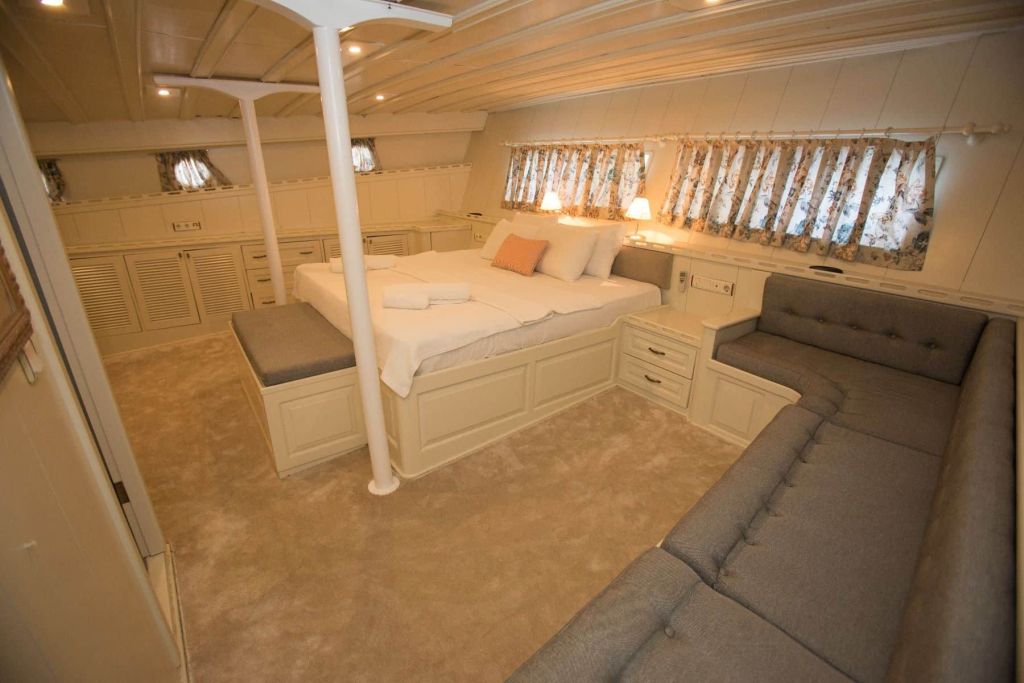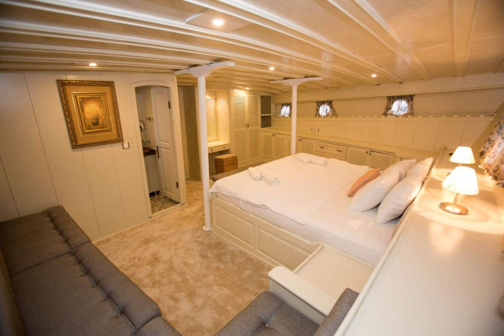Unser 8-Kabinen-Gulet hat 2 Master- und 6 Doppelkabinen, mit Klimaanlage, Toilette und Dusche in jeder Kabine, und bietet problemlos Platz für insgesamt 16 Gäste. Das große und komfortable Wohnzimmer ist mit Geräten wie Fernseher, Satellitenfernsehen und CD-Player ausgestattet, um Ihre Zeit außerhalb des Meeres noch angenehmer zu gestalten. Während Sie die in unserer voll ausgestatteten Küche zubereiteten Mahlzeiten genießen, können Sie auch jeden Blauton entdecken.