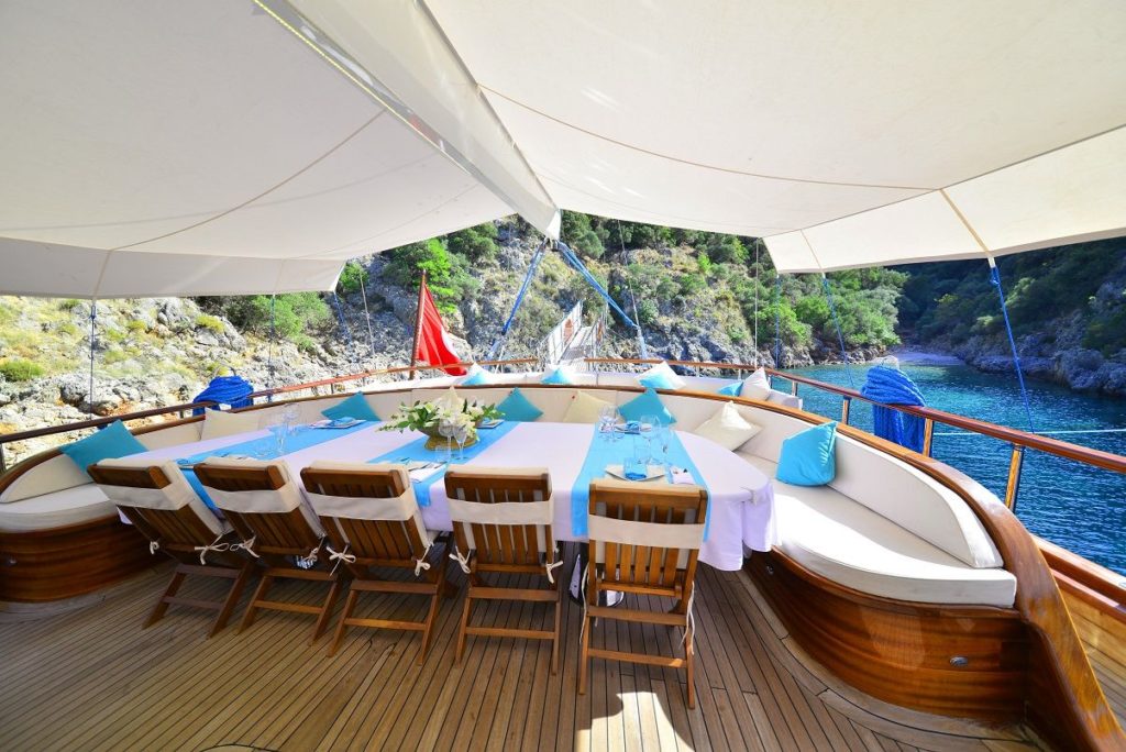 Wir haben 4 erfahrene Mitarbeiter auf unserem Gulet und unser Personal wird Sie beim Service, der Essenszubereitung, der täglichen Reinigung und allen anderen Angelegenheiten, die Sie benötigen, unterstützen. Wir garantieren eine hundertprozentige Kundenzufriedenheit auf unserer Yacht basierend auf dem Feedback und den Referenzen, die wir in den letzten Jahren von unseren Kunden während der Anmietungen erhalten haben, die wir in Bodrum mit unserem Gulet Lycian Queen vorgenommen haben. Wir laden Sie ein, die Küsten von Bodrum – Gökova – Marmaris – Hisaronu – Göcek – Fethiye mit unserem Gulet Lycian Queen zu erkunden.