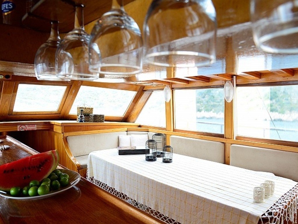 Gulet Mozaik, eines der schönsten Boote unserer Gulet-Flotte, verspricht Komfort und Bequemlichkeit für große Gruppen und Familien. Gulet Mozaik, das 1997 zum ersten Mal vom Stapel lief, wurde 2013 für Ihre Bequemlichkeit und Ihren Komfort erneuert. Gulet Mozaik Boot 26 m. Mit seiner Länge und Breite von 7 Metern bietet es sowohl komfortable klimatisierte Kabinen als auch ein komfortables und geräumiges Deck. Mit dem Mozaik-Boot können Sie eine der Routen Bodrum, Gökova, Marmaris und Fethiye wählen oder je nach Dauer Ihres Urlaubs zwei Routen der Blauen Kreuzfahrt kombinieren und unser Gulet für 14 Tage mieten. Unser 8-Kabinen-Gulet verfügt über 8 Doppelkabinen, einschließlich Klimaanlage, Toilette und Dusche in jeder Kabine, und bietet problemlos Platz für insgesamt 16 Gäste. Das große und komfortable Wohnzimmer ist mit Geräten wie Fernseher, Satellitenfernsehen und CD-Player ausgestattet, um Ihre Zeit außerhalb des Meeres noch angenehmer zu gestalten. Während Sie die in unserer voll ausgestatteten Küche zubereiteten Mahlzeiten genießen, können Sie auch jeden Blauton entdecken. Wir haben 3 erfahrene Mitarbeiter auf unserem Gulet, und unser Personal wird Sie beim Service, der Essenszubereitung, der täglichen Reinigung und allen anderen Angelegenheiten, die Sie benötigen, unterstützen. Wir garantieren eine hundertprozentige Kundenzufriedenheit auf unserer Yacht basierend auf dem Feedback und den Referenzen, die wir in den letzten Jahren von unseren Kunden während der Anmietungen erhalten haben, die wir in Bodrum mit unserem Mozaik-Gulet vorgenommen haben. Wir laden Sie ein, die Küsten von Bodrum – Gökova – Marmaris – Hisaronu – Göcek – Fethiye mit Gulet Mozaik zu erkunden. |