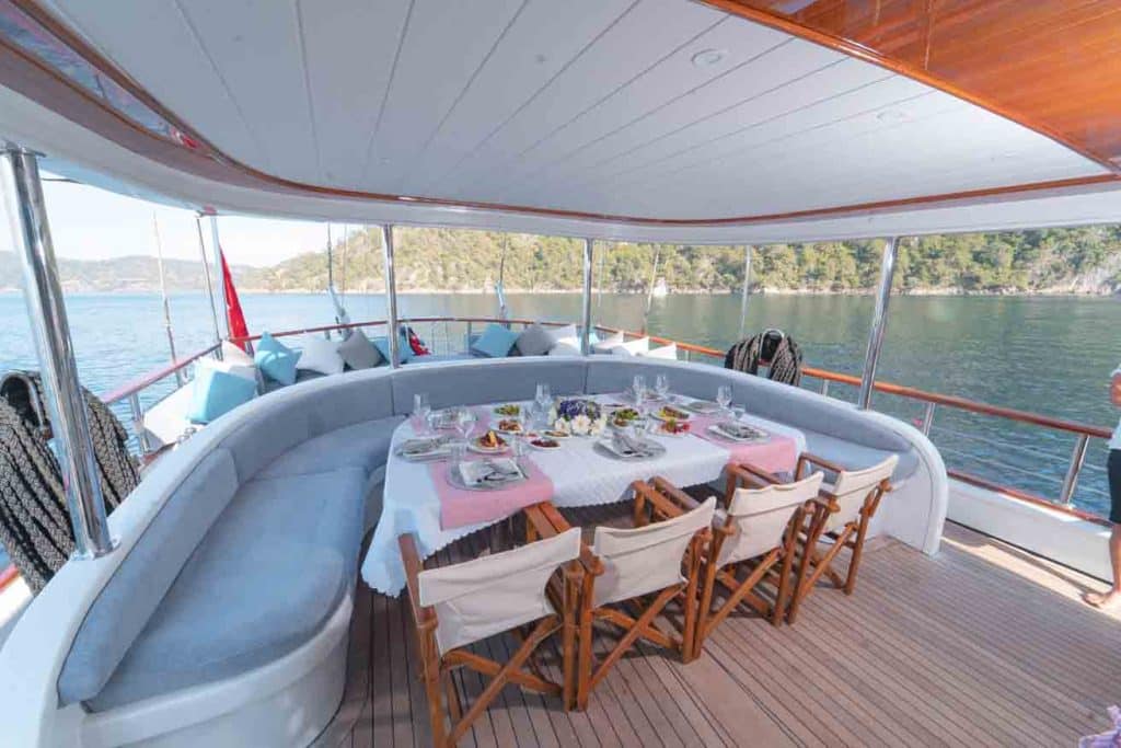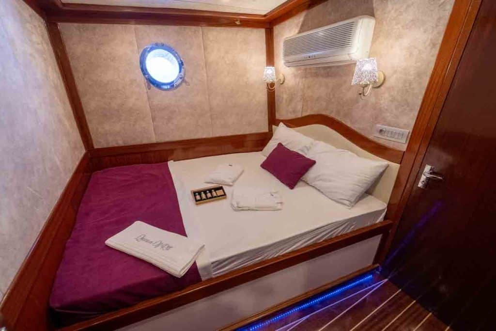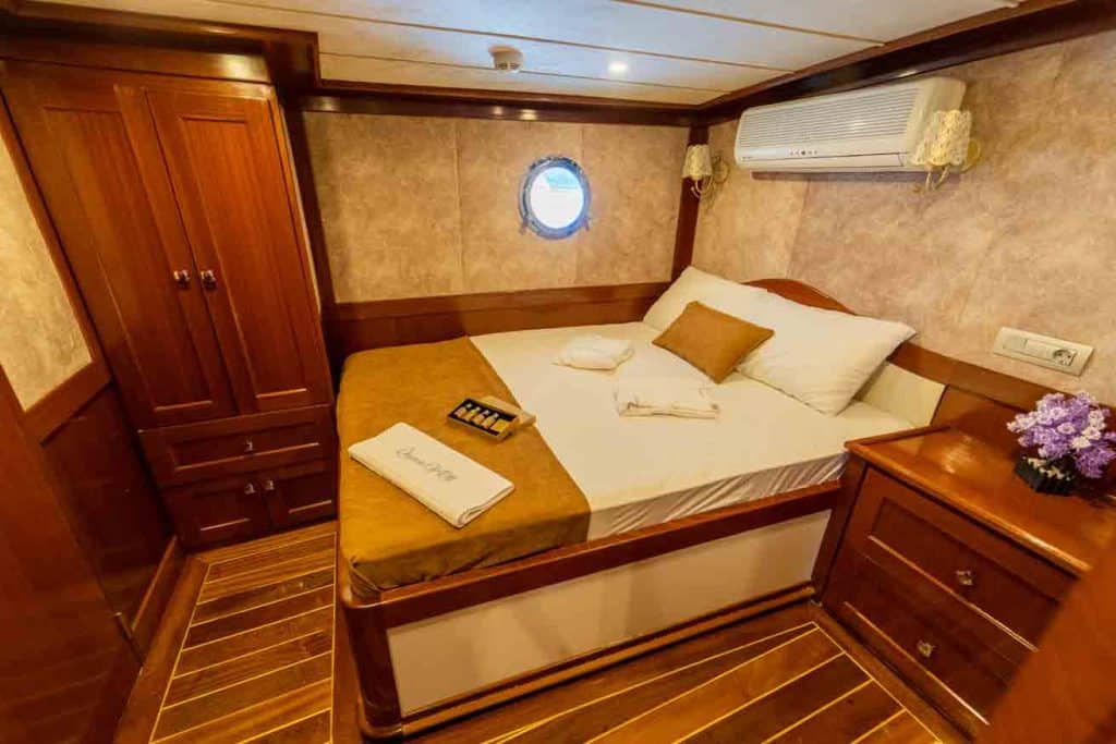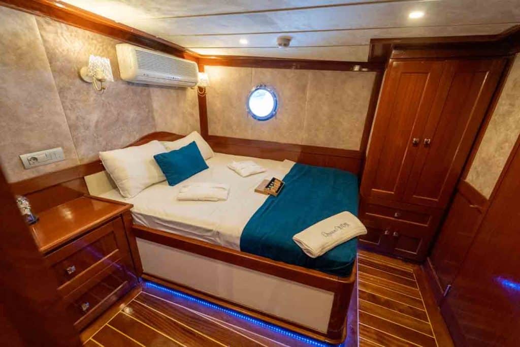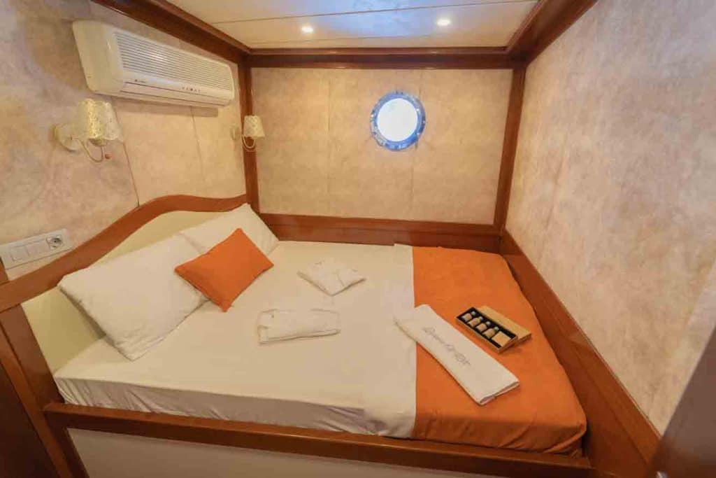 Die Gulet Queen Of RTT, eines der schönsten Boote unserer Gulet-Flotte, verspricht Komfort und Bequemlichkeit für große Gruppen und Familien. Die Gulet Queen Of RTT, die 2009 zum ersten Mal vom Stapel lief, wurde 2021 für Ihre Bequemlichkeit und Ihren Komfort erneuert. Das Queen Of RTT-Boot ist 32 m lang. Mit seiner Länge und Breite von 7,50 Metern bietet es sowohl komfortable klimatisierte Kabinen als auch ein komfortables und geräumiges Deck. Mit dem Boot Queen Of RTT können Sie eine der Routen Bodrum, Gökova, Marmaris oder Fethiye wählen oder je nach Dauer Ihres Urlaubs zwei Routen der Blauen Kreuzfahrt kombinieren und unser Gulet für 14 Tage mieten. Unser 8-Kabinen-Gulet verfügt über 8 Doppelkabinen, einschließlich Klimaanlage, Toilette und Dusche in jeder Kabine, und bietet problemlos Platz für insgesamt 16 Gäste. Das große und komfortable Wohnzimmer ist mit Geräten wie Fernseher, Satellitenfernsehen und CD-Player ausgestattet, um Ihre Zeit außerhalb des Meeres noch angenehmer zu gestalten. Während Sie die in unserer voll ausgestatteten Küche zubereiteten Mahlzeiten genießen, können Sie auch jeden Blauton entdecken. Wir haben 6 erfahrene Mitarbeiter auf unserem Gulet und unser Personal wird Sie beim Service, der Essenszubereitung, der täglichen Reinigung und allen anderen Angelegenheiten, die Sie benötigen, unterstützen. Wir garantieren eine hundertprozentige Kundenzufriedenheit auf unserer Yacht basierend auf dem Feedback und den Referenzen, die wir in den letzten Jahren von unseren Kunden während der Anmietungen erhalten haben, die wir in Bodrum mit unserem Gulet Queen Of RTT vorgenommen haben. Wir laden Sie ein, die Küsten von Bodrum – Gökova – Marmaris – Hisaronu – Göcek – Fethiye mit Queen Of RTT zu erkunden. |