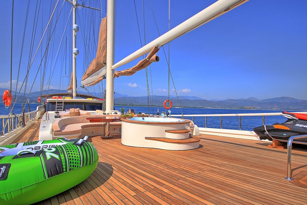 Die Gulet Queen Of Salmakis, eines der schönsten und größten Boote unserer Gulet-Flotte, verspricht Komfort und Bequemlichkeit für große Gruppen und Familien. Unser Boot Queen Of Salmakis wurde 2019 vom Stapel gelassen. Das Boot Queen Of Salmakis ist 39,10 m lang. Mit seiner Länge und Breite von 8,50 Metern bietet es sowohl komfortable klimatisierte Kabinen als auch ein komfortables und geräumiges Deck. Mit dem Boot Queen Of Salmakis können Sie eine der Routen Bodrum, Gökova, Marmaris oder Fethiye wählen oder je nach Dauer Ihres Urlaubs zwei Routen der Blauen Kreuzfahrt kombinieren und unser Gulet für 14 Tage mieten. Unser 8-Kabinen-Gulet hat 2 Master-, 4 Doppel- und 2 Dreibettkabinen mit Klimaanlage, Toilette und Dusche in jeder Kabine und bietet problemlos Platz für insgesamt 18 Gäste. Das große und komfortable Wohnzimmer ist mit Geräten wie Fernseher, Satellitenfernsehen und CD-Player ausgestattet, um Ihre Zeit außerhalb des Meeres noch angenehmer zu gestalten. Während Sie die in unserer voll ausgestatteten Küche zubereiteten Mahlzeiten genießen, können Sie auch jeden Blauton entdecken. Wir haben 7 erfahrene Mitarbeiter auf unserem Gulet und unser Personal wird Sie beim Service, der Essenszubereitung, der täglichen Reinigung und allen anderen Angelegenheiten, die Sie benötigen, unterstützen. Wir garantieren eine hundertprozentige Kundenzufriedenheit auf unserer Yacht basierend auf dem Feedback und den Referenzen, die wir in den letzten Jahren von unseren Kunden während der Anmietungen erhalten haben, die wir in Bodrum mit unserem Gulet Queen Of Salmakis vorgenommen haben. Wir laden Sie ein, die Küsten von Bodrum – Gökova – Marmaris – Hisaronu – Göcek – Fethiye mit der Gulet Queen Of Salmakis zu erkunden. |