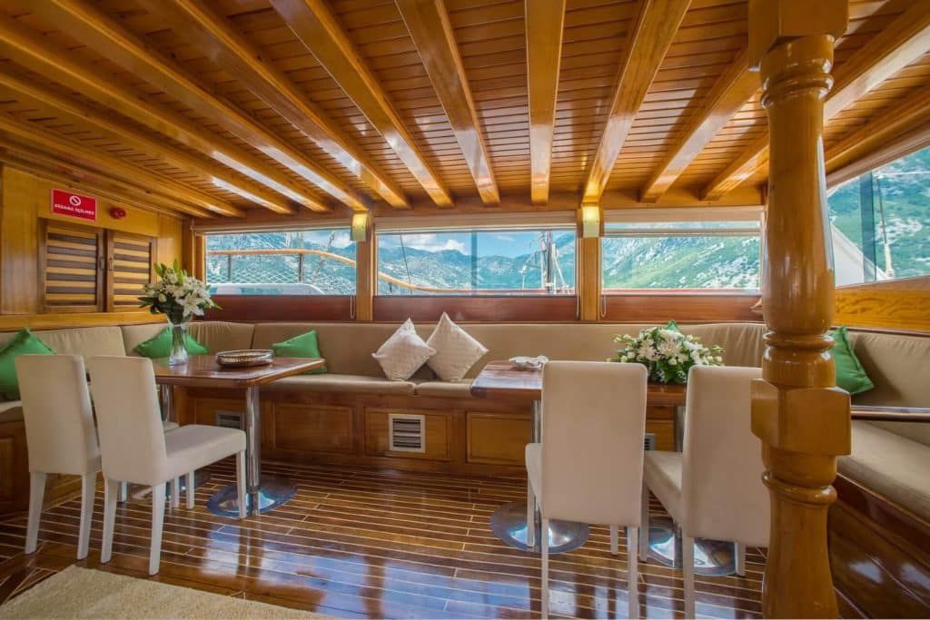 Gulet Sadri Usta, eines der schönsten Boote unserer Gulet-Flotte, verspricht Komfort und Bequemlichkeit für große Gruppen und Familien. Gulet Sadri Usta, das 2005 zum ersten Mal vom Stapel lief, wurde 2017 für Ihre Bequemlichkeit und Ihren Komfort renoviert. Das Boot Sadri Usta ist 32 Meter lang. Mit seiner Länge und Breite von 7,35 Metern bietet es sowohl komfortable klimatisierte Kabinen als auch ein komfortables und geräumiges Deck. Mit dem Boot Sadri Usta können Sie je nach Urlaubsdauer eine der Routen Bodrum, Gökova, Marmaris oder Fethiye wählen oder zwei Routen der Blauen Kreuzfahrt kombinieren und unser Gulet für 14 Tage mieten. Unser 8-Kabinen-Gulet hat 6 Doppel- und 2 Zweibettkabinen mit Klimaanlage, Toilette und Dusche in jeder Kabine und bietet problemlos Platz für insgesamt 16 Gäste. Das große und komfortable Wohnzimmer ist mit Geräten wie Fernseher, Satellitenfernsehen und CD-Player ausgestattet, um Ihre Zeit außerhalb des Meeres noch angenehmer zu gestalten. Während Sie die in unserer voll ausgestatteten Küche zubereiteten Mahlzeiten genießen, können Sie auch jeden Blauton entdecken. Wir haben 4 erfahrene Mitarbeiter auf unserem Gulet und unser Personal wird Sie beim Service, der Essenszubereitung, der täglichen Reinigung und allen anderen Angelegenheiten, die Sie benötigen, unterstützen. Wir garantieren eine hundertprozentige Kundenzufriedenheit auf unserer Yacht basierend auf dem Feedback und den Referenzen, die wir in den letzten Jahren von unseren Kunden während der Anmietungen erhalten haben, die wir in Bodrum mit unserem Gulet Sadri Usta vorgenommen haben. Wir laden Sie ein, die Küsten von Bodrum – Gökova – Marmaris – Hisaronu – Göcek – Fethiye mit unserem Gulet Sadri Usta zu erkunden. |