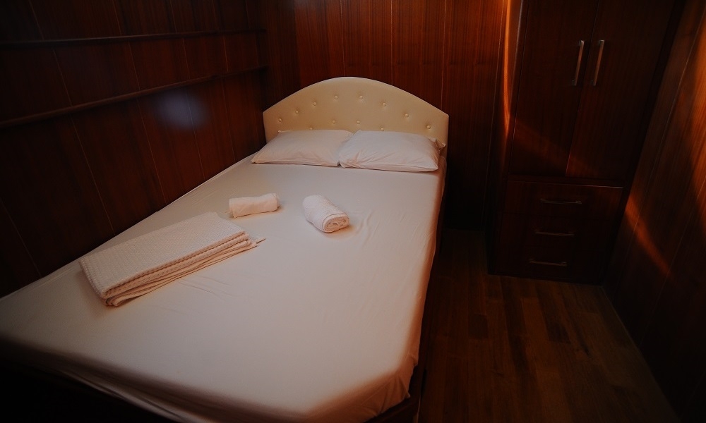 Unser 8-Kabinen-Gulet verfügt über 8 Doppelkabinen, einschließlich Klimaanlage, Toilette und Dusche in jeder Kabine, und bietet problemlos Platz für insgesamt 16 Gäste. Das große und komfortable Wohnzimmer ist mit Geräten wie Fernseher, Satellitenfernsehen und CD-Player ausgestattet, um Ihre Zeit außerhalb des Meeres noch angenehmer zu gestalten. Während Sie die in unserer voll ausgestatteten Küche zubereiteten Mahlzeiten genießen, können Sie auch jeden Blauton entdecken.