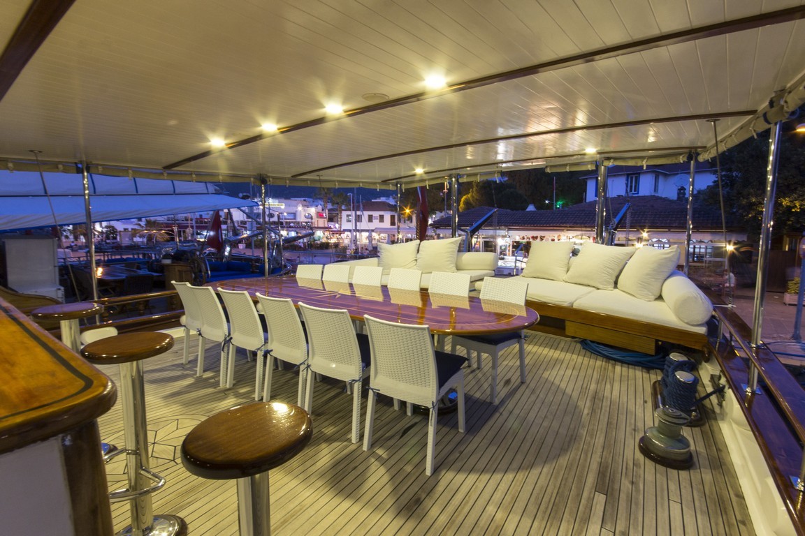 Gulet Cemre 4, eines der schönsten Boote unserer Gulet-Flotte, verspricht Komfort und Bequemlichkeit für große Gruppen und Familien. Gulet Cemre 4, das im Jahr 2000 zum ersten Mal vom Stapel gelassen wurde, wurde 2014 für Ihre Bequemlichkeit und Ihren Komfort erneuert. Gulet Cemre 4 Boot 30,50 m. Mit seiner Länge und Breite von 7,60 Metern bietet es sowohl komfortable klimatisierte Kabinen als auch ein komfortables und geräumiges Deck. Mit dem Boot Cemre 4 können Sie eine der Routen Bodrum, Gökova, Marmaris und Fethiye wählen oder je nach Dauer Ihres Urlaubs zwei Routen der Blauen Kreuzfahrt kombinieren und unser Gulet für 14 Tage mieten.