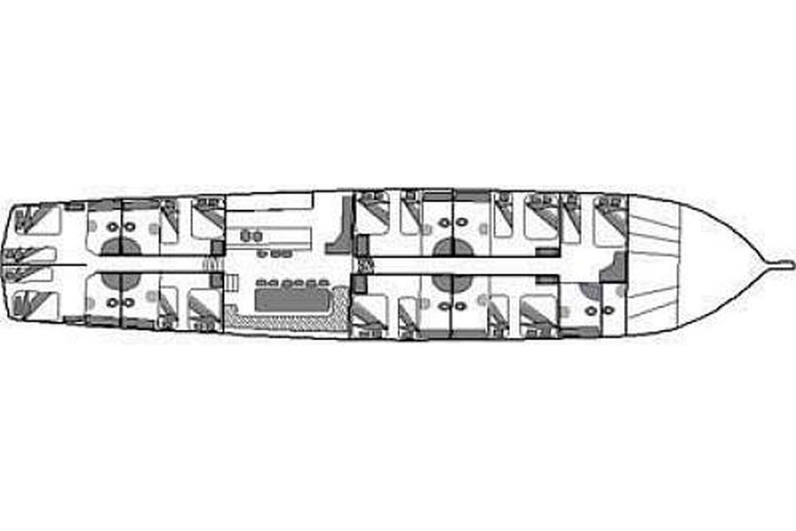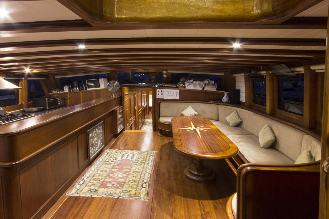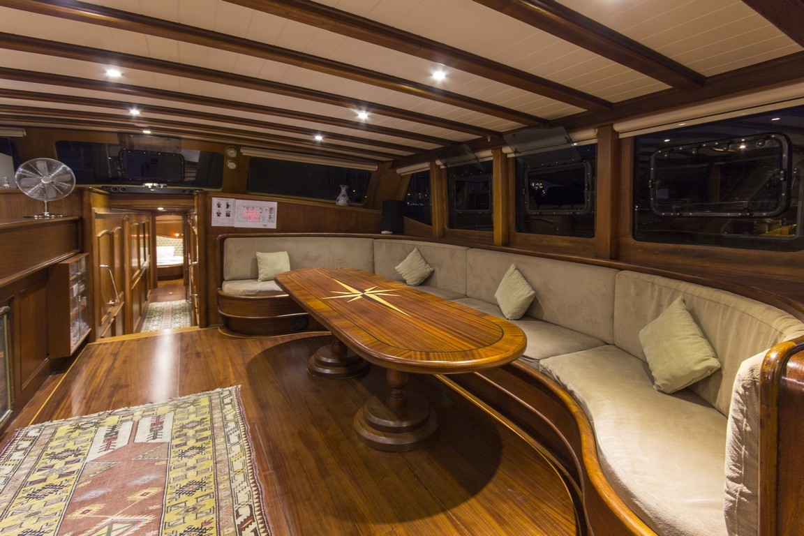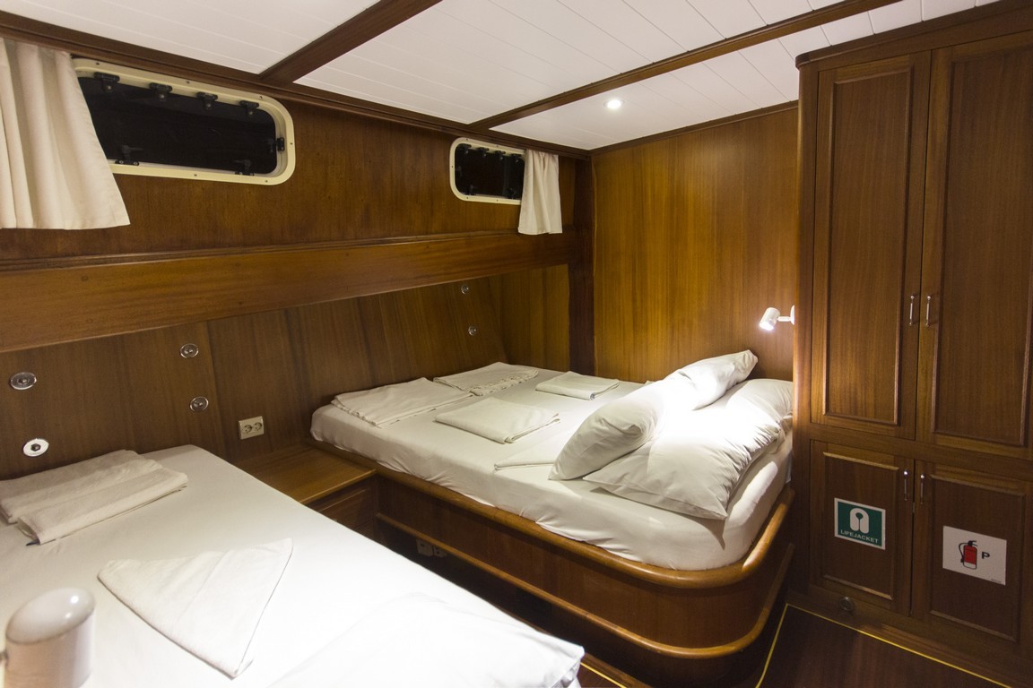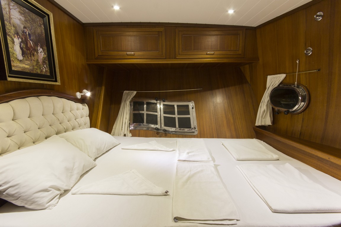 Unser Gulet mit 9 Kabinen hat 1 Master-, 6 Doppel- und 2 Zweibettkabinen, mit Klimaanlage, Toilette und Dusche in jeder Kabine, und bietet problemlos Platz für insgesamt 18 Gäste. Das große und komfortable Wohnzimmer ist mit Geräten wie Fernseher, Satellitenfernsehen und CD-Player ausgestattet, um Ihre Zeit außerhalb des Meeres noch angenehmer zu gestalten. Während Sie die in unserer voll ausgestatteten Küche zubereiteten Mahlzeiten genießen, können Sie auch jeden Blauton entdecken.