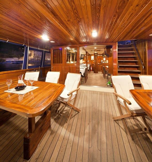 | Bis zu 8 Gäste; 9 Doppelkabinen, Salon und alle Kabinen mit Klimaanlage, Fernseher in allen Kabinen, Duschkabine und Toiletten im Haushaltsstil in allen Kabinen, separate Mannschaftskabinen |