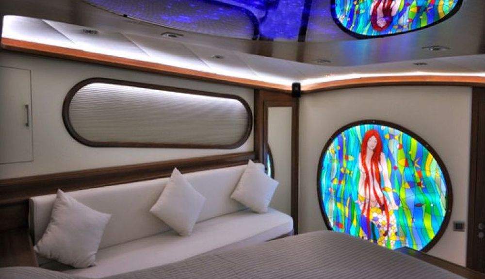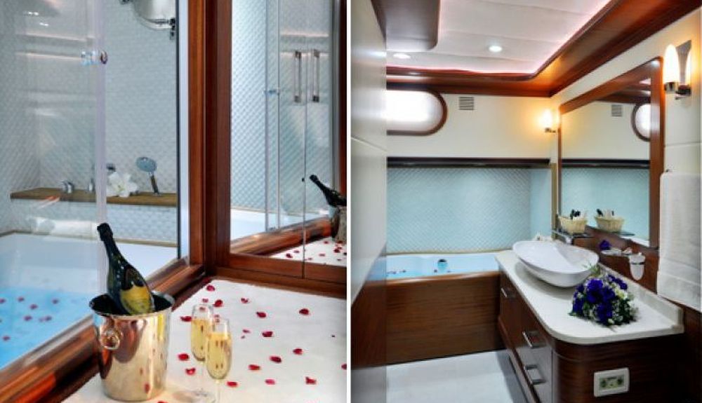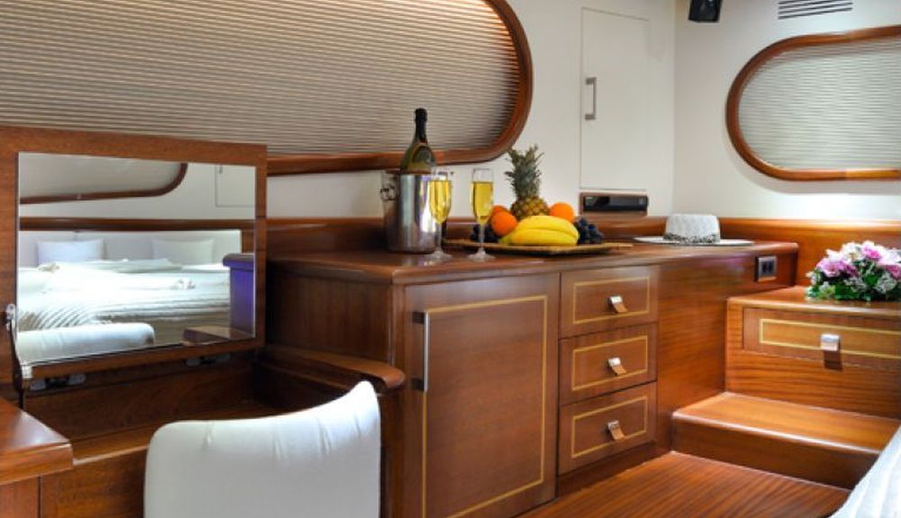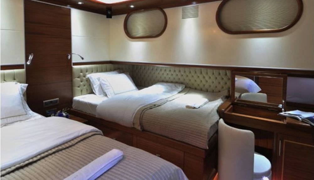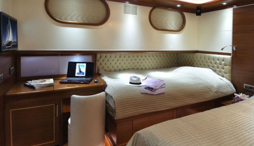 | 12 Gäste; 6 Kabinen; 2 Eignerkabinen, 2 Doppelkabinen, 2 Dreibettkabinen, Klimaanlage, Dusche und WC in jeder Kabine |