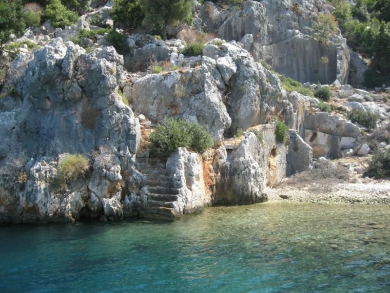 Aufgrund der welligen Meere der Kaps Disibilmez und Kurtoglu, die wir überqueren müssen, werden wir früher als an den anderen Tagen kreuzen und den weltberühmten Golf von Göcek erreichen. Wir werden bei Sunken Bath ankern, um zu frühstücken und eine Badepause einzulegen. Aufgrund der wunderschönen Unterwasserruinen eines alten Bades ist dieser Ort auch als Kleopatra-Bucht bekannt. Dann fahren wir zur Insel Tersane. Dieser natürlich geschützte Hafen wurde in byzantinischer und osmanischer Zeit als Werft genutzt. Abendessen und Übernachtung finden auf der Insel Kizil statt.