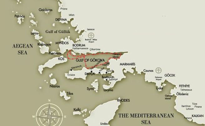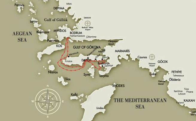 | ROUTE 1 Bodrum – Golf von Gökova – Bodrum | 7 Nächte / 8 Tage | Abreise: Samstag | Regulär mit Standard Plus Gulet |