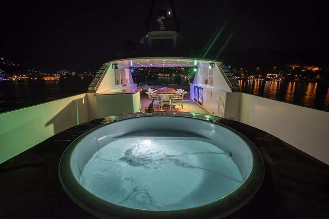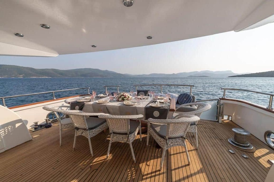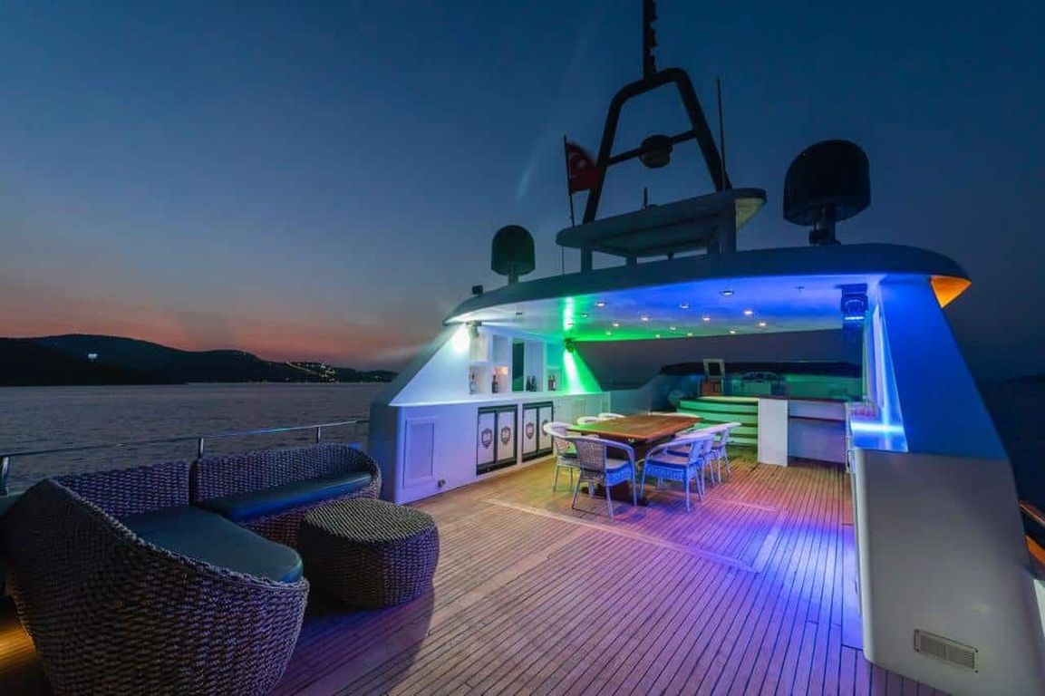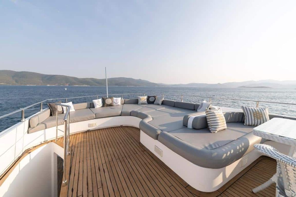 | Kapazität für bis zu 12 Gäste; 1 VIP-, 1 Master-, 1 Zweibett-, 2 Dreibettkabinen, Klimaanlage, Duschkabine und Heimtoiletten in allen Kabinen, separate Crew-Kabinen. |